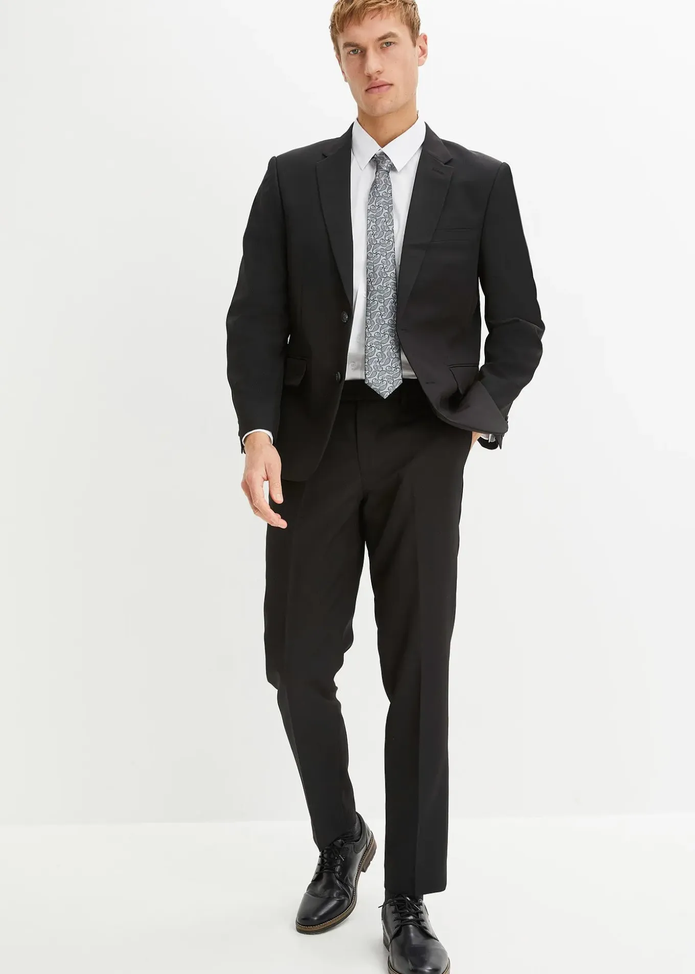 Chemise: bouton, Cravate: bouton, zip, Pantalon: bouton, zip, Veste de costume: boutons