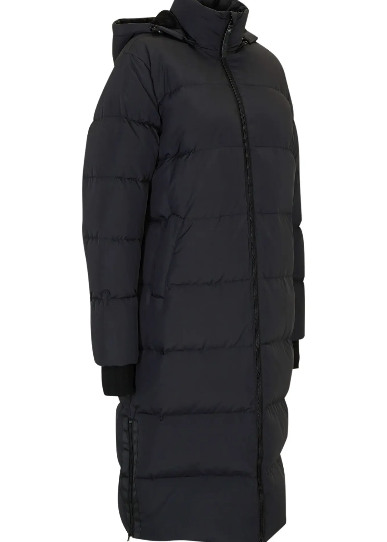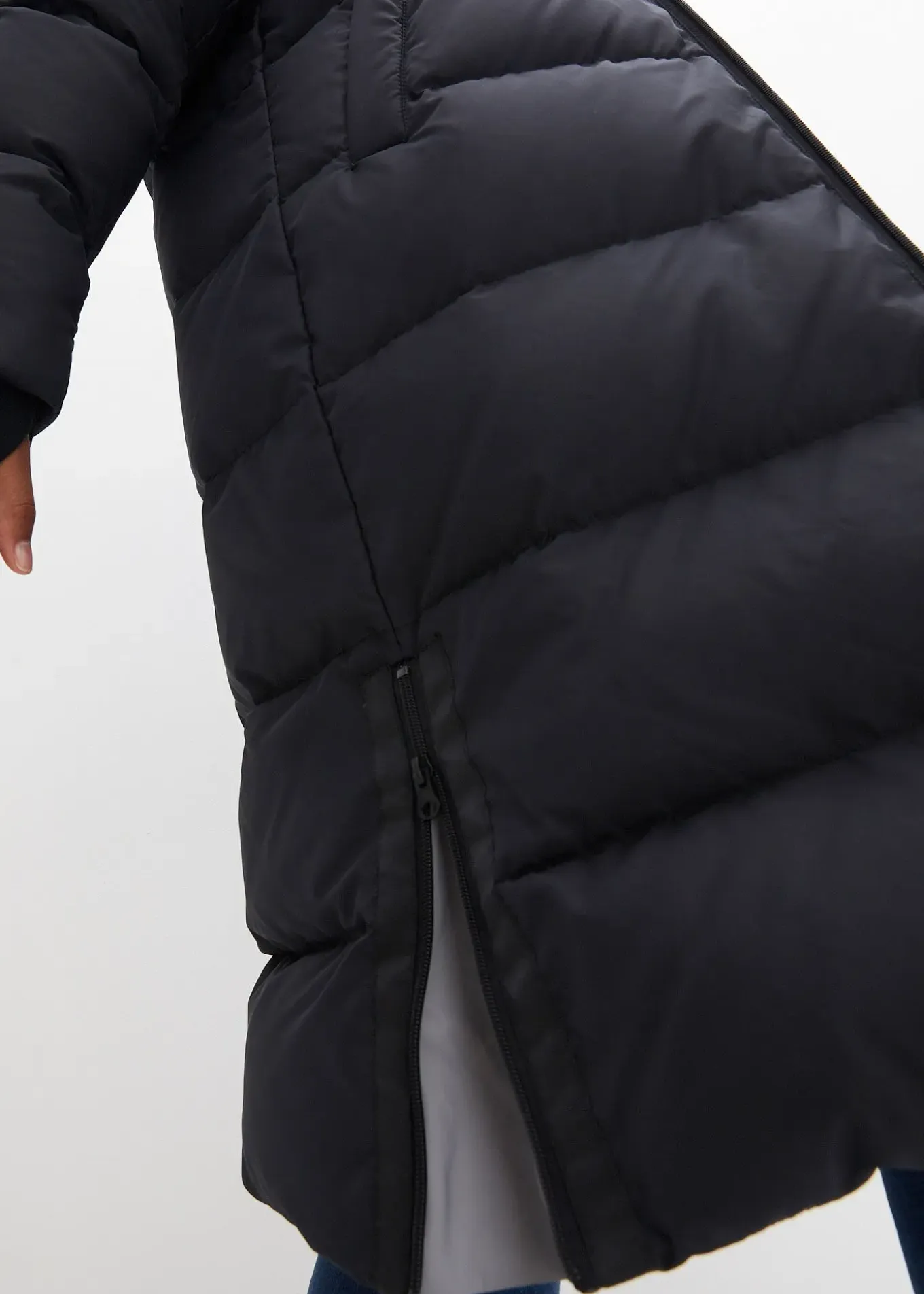 Doudoune longue et polyvalente avec zips sur le côté et pochon de rangement