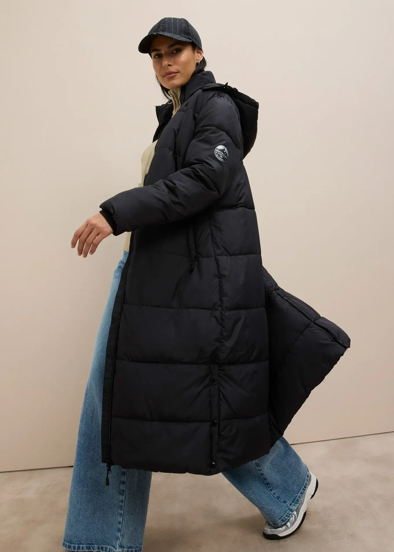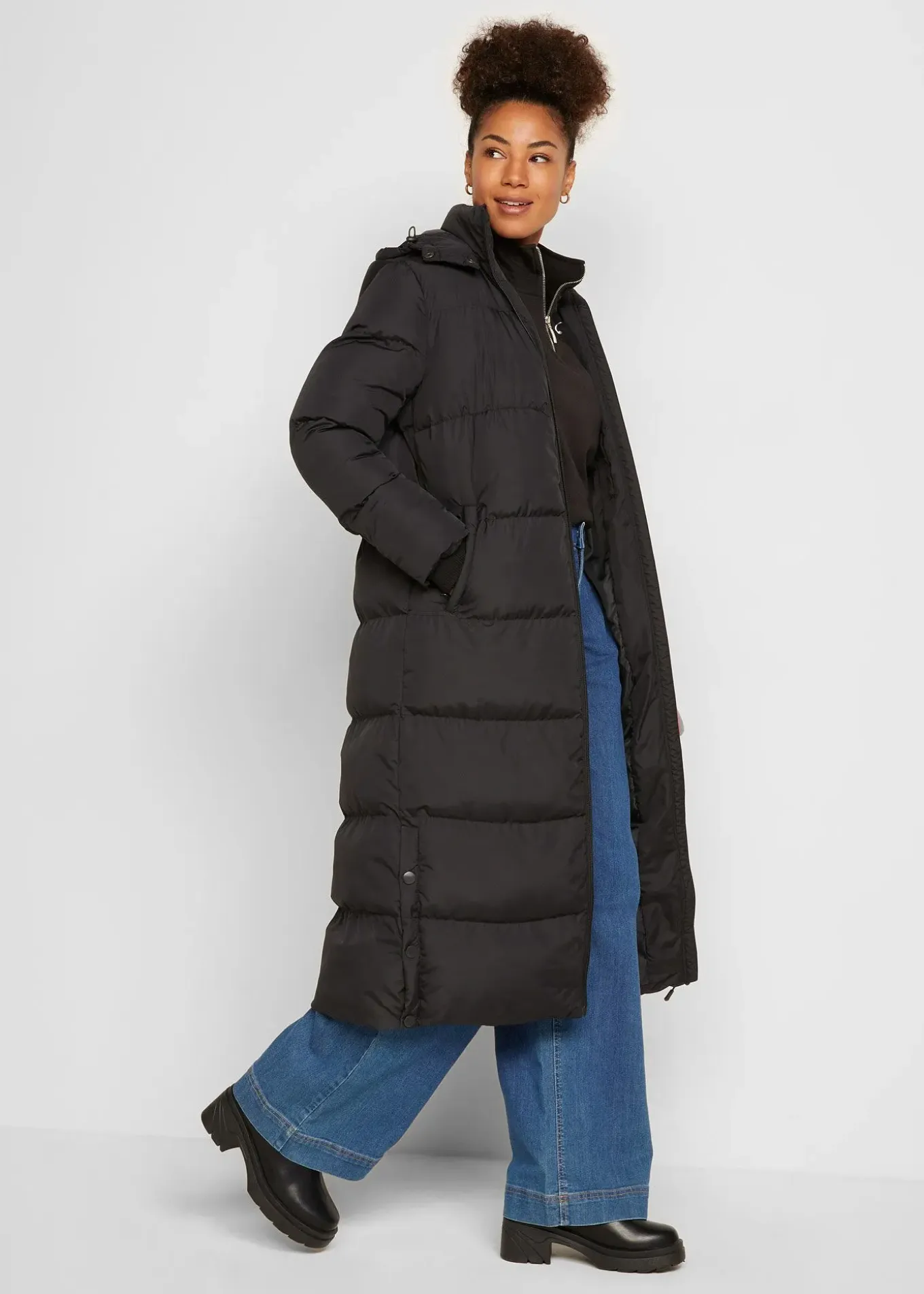 Doudoune longue et chaude avec boutons sur les côtés