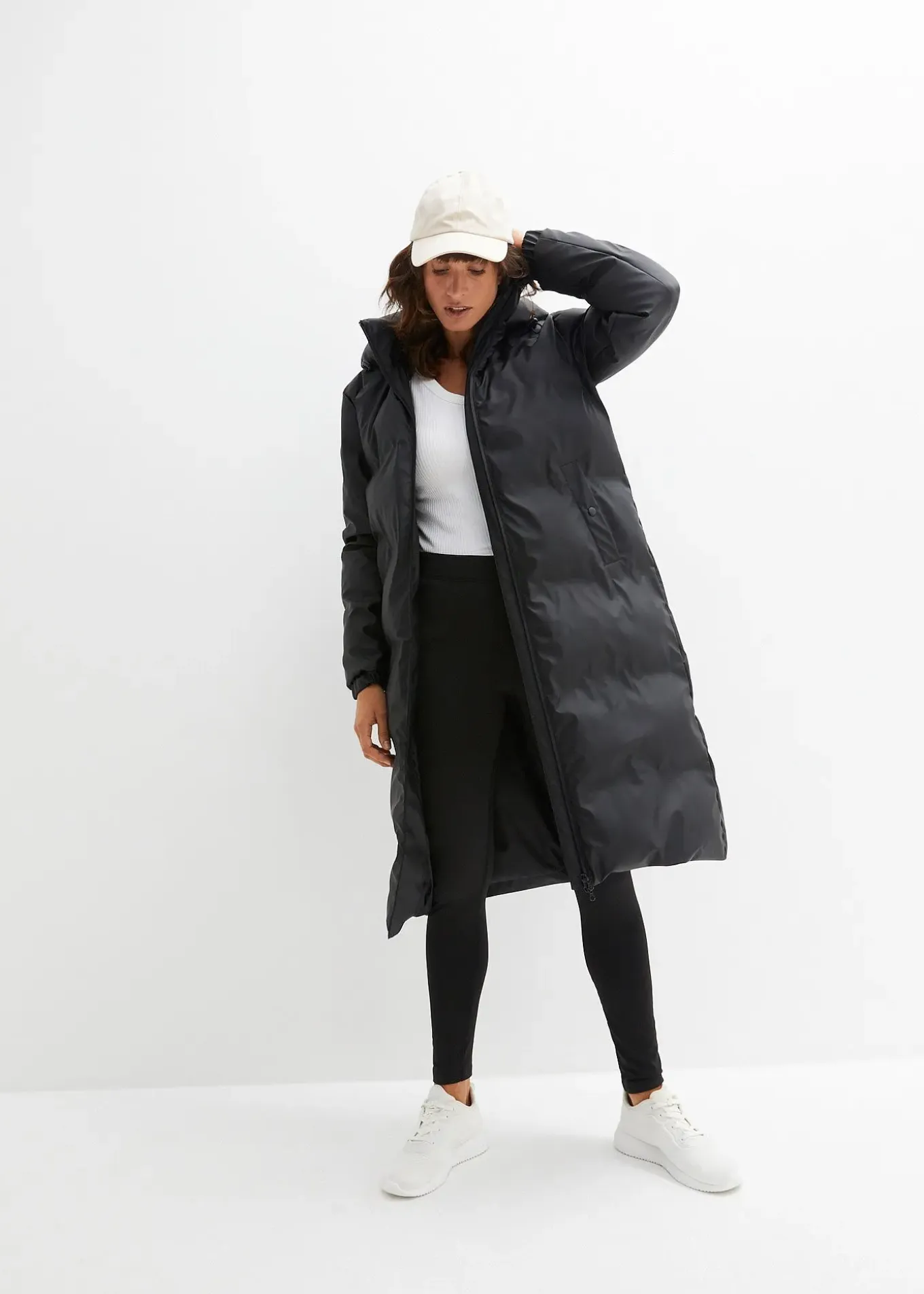 Longue doudoune déperlante avec poches refermables, coupe ample