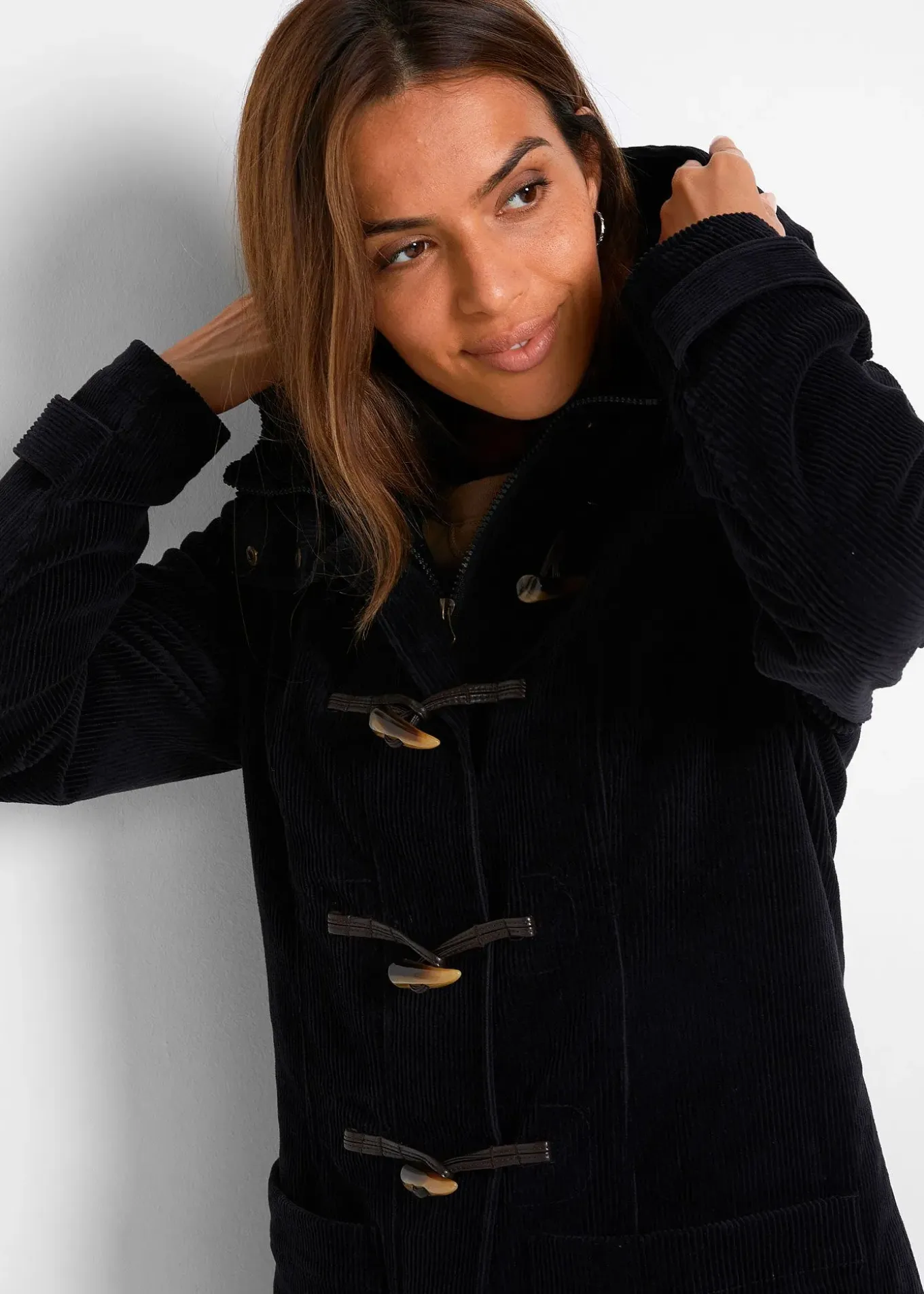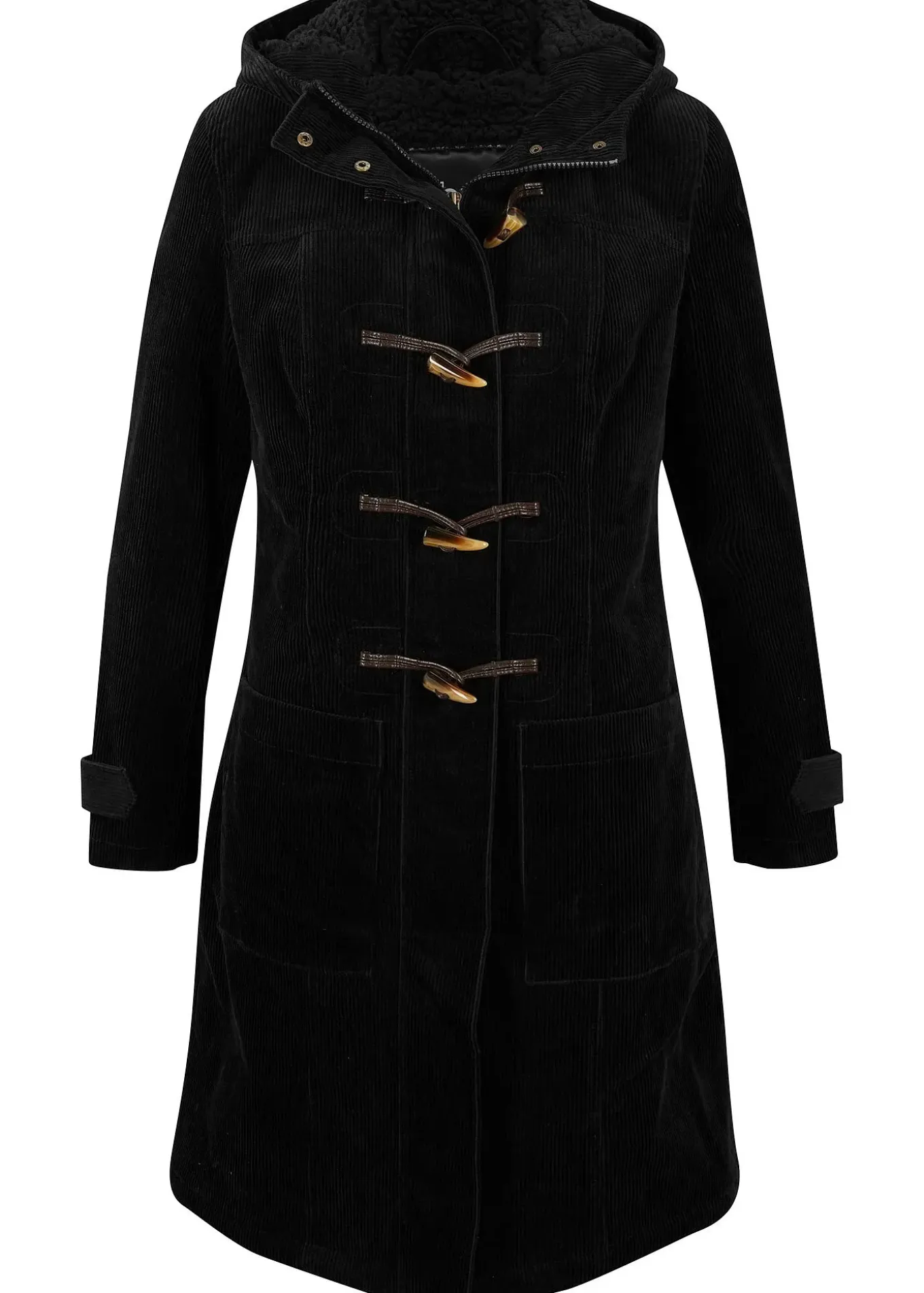 Duffle-coat en velours côtelé doublé avec capuche et boutons brandebourg