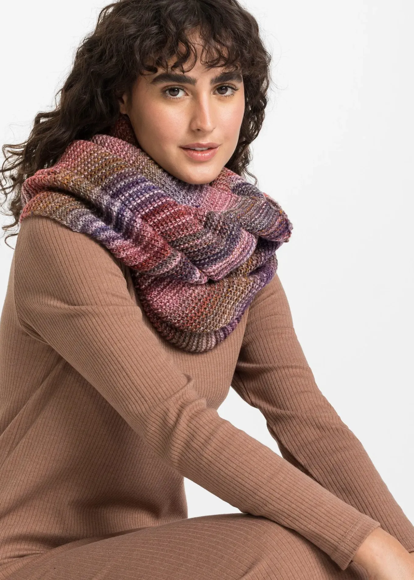 Cette écharpe multicolore vous garde bien au chaud par temps froid.