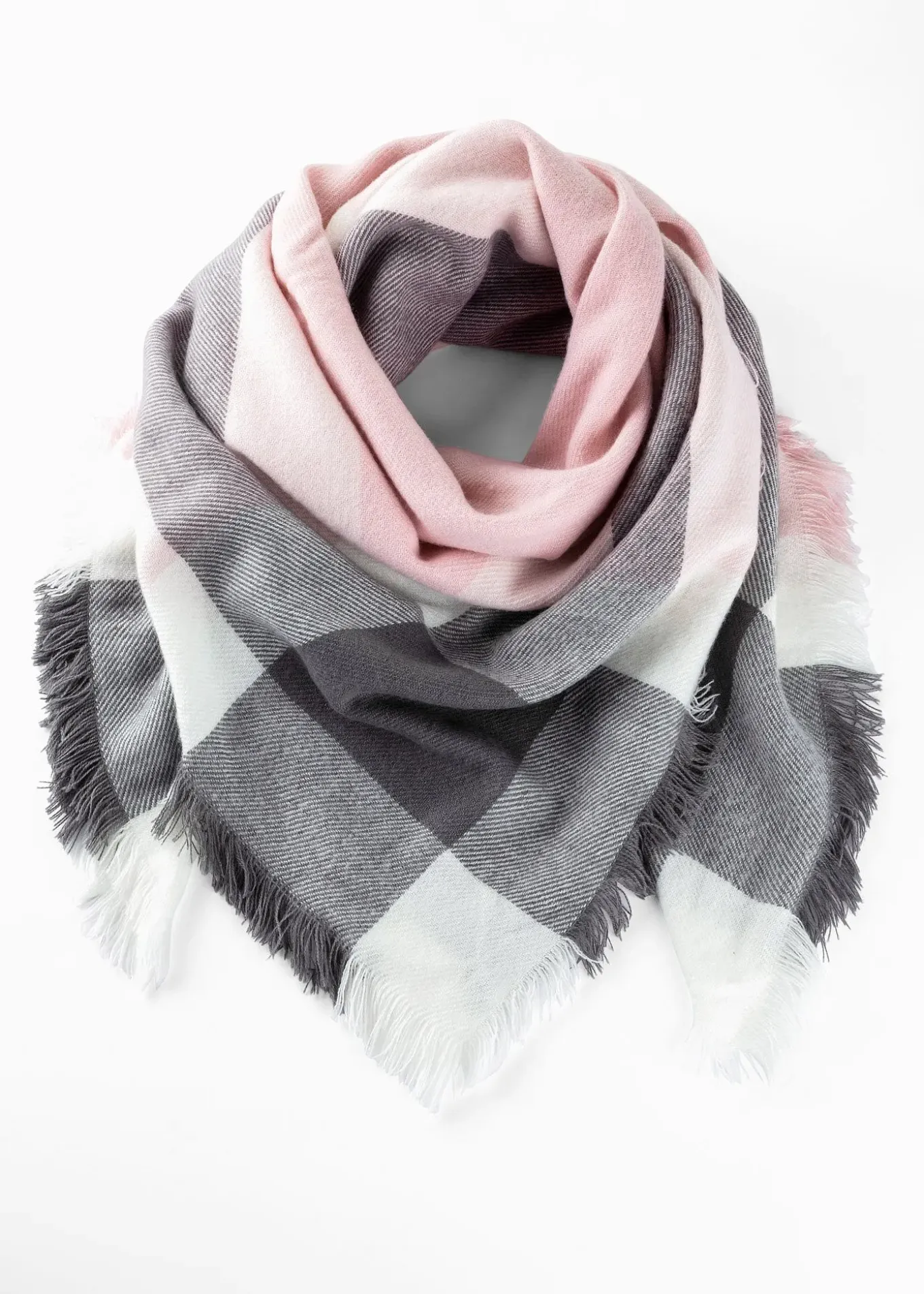 Ce foulard doux à carreaux vous garde bien au chaud.