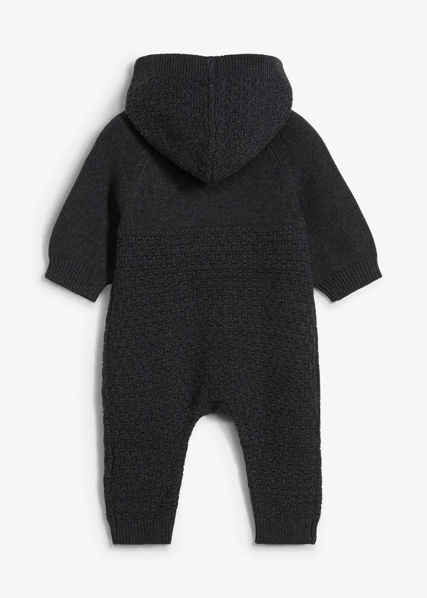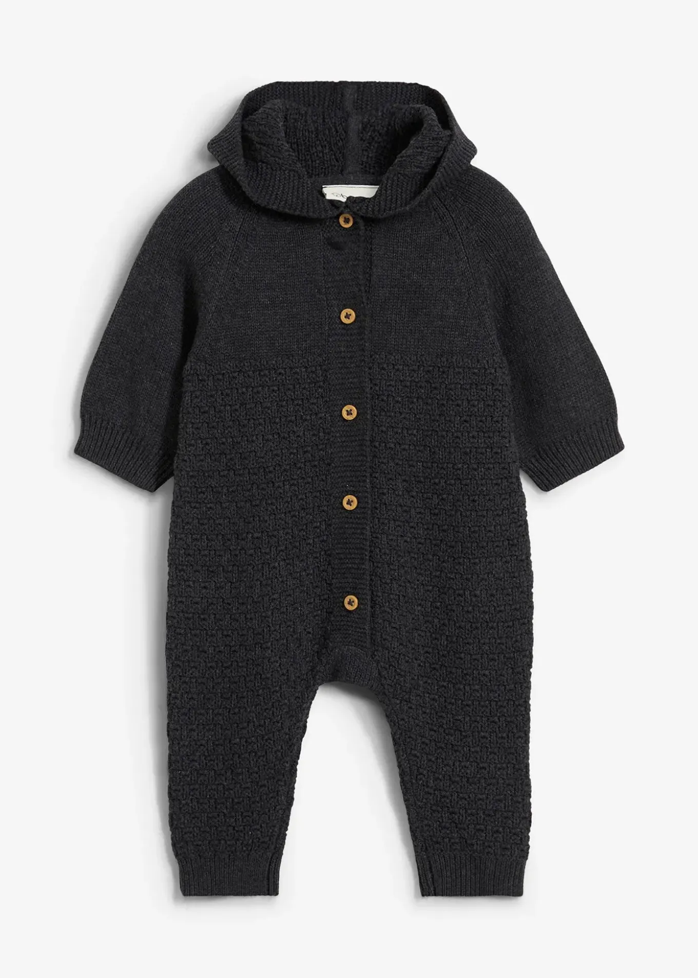 Gigoteuse en maille respirante avec patte de boutonnage, bords-côtes aux poignets et aux chevilles, capuche