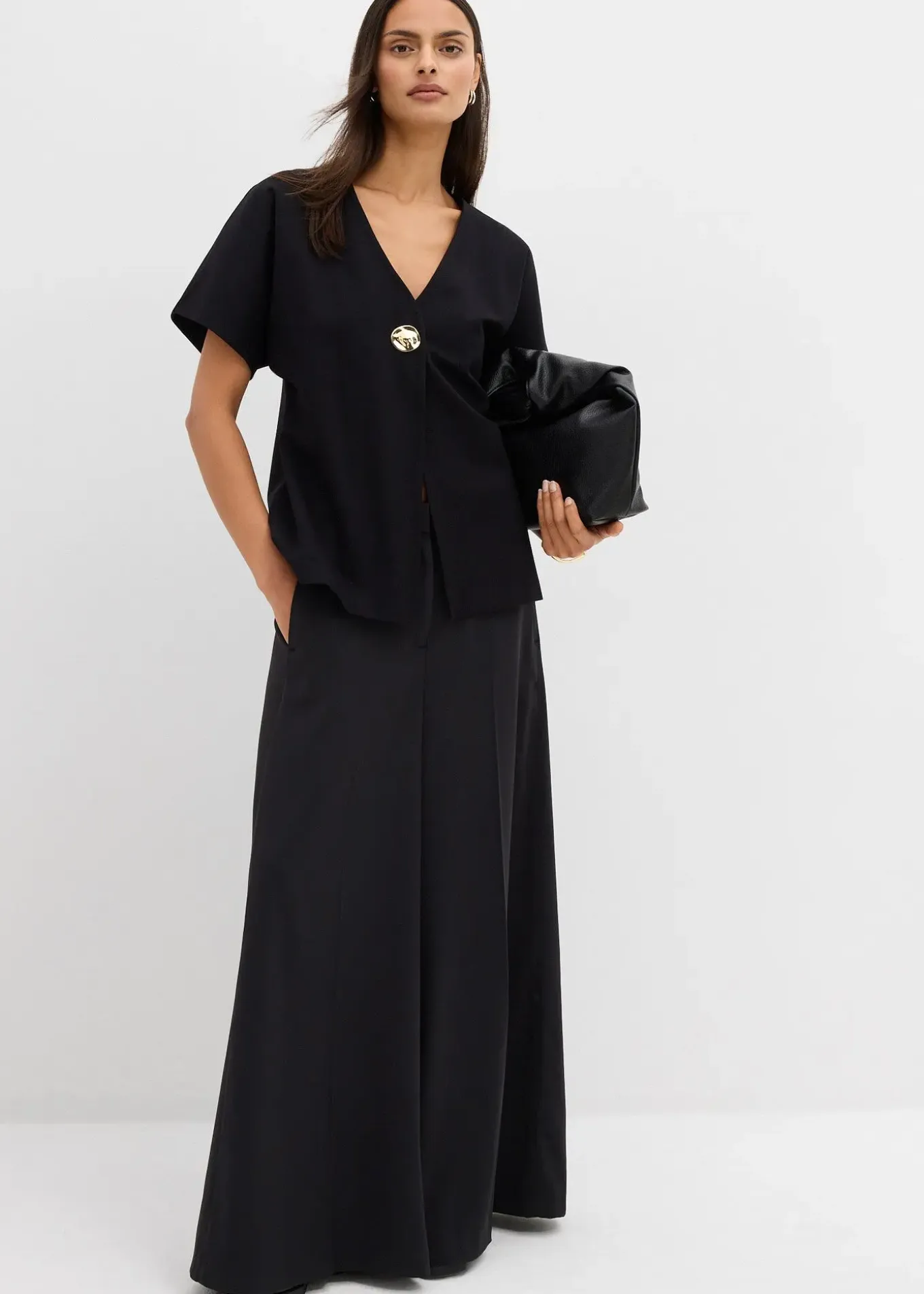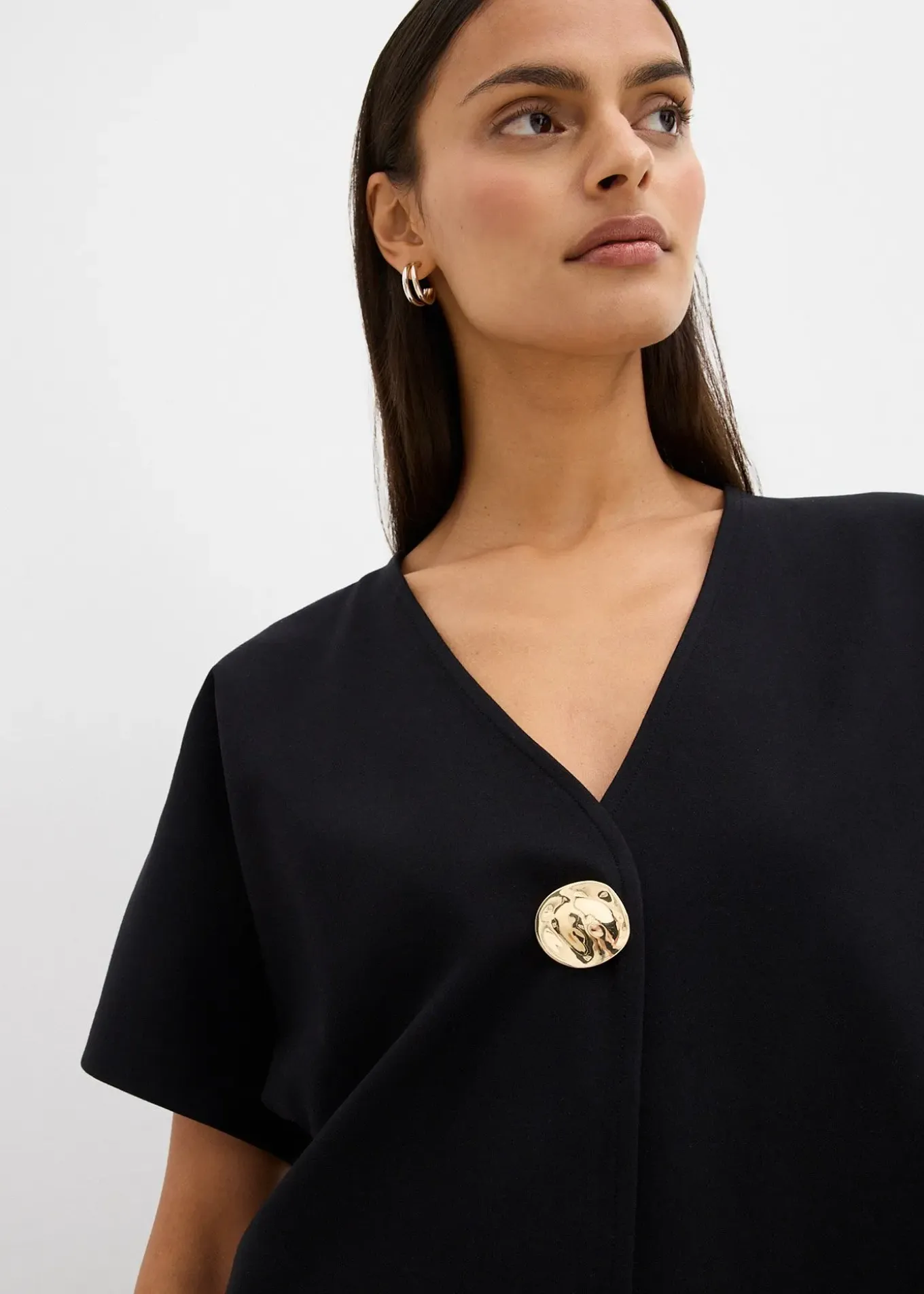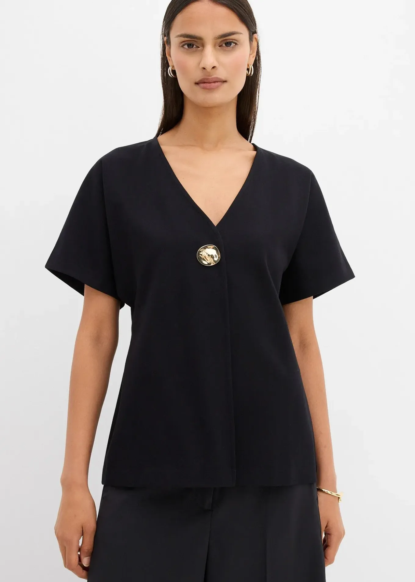 Gilet ample à manches courtes et bouton décoratif