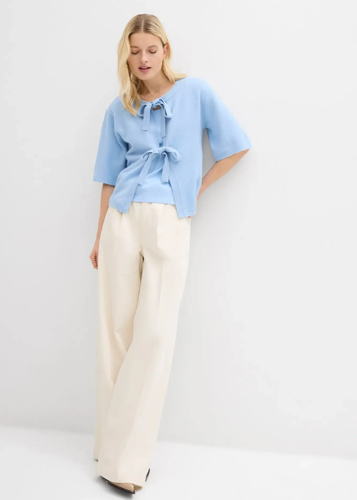 Gilet tendance en fine maille avec nouettes, manches coude