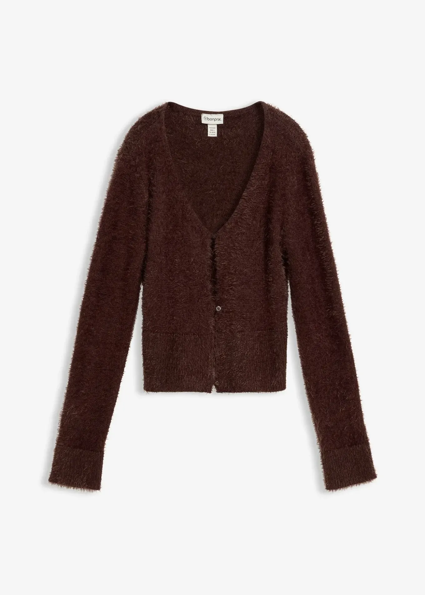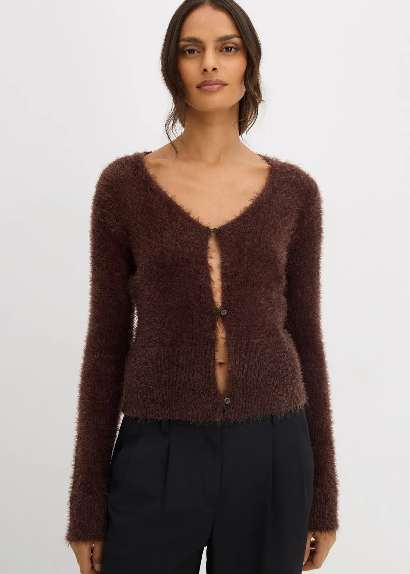Gilet en fine maille poilue tendance avec un décolleté plongeant