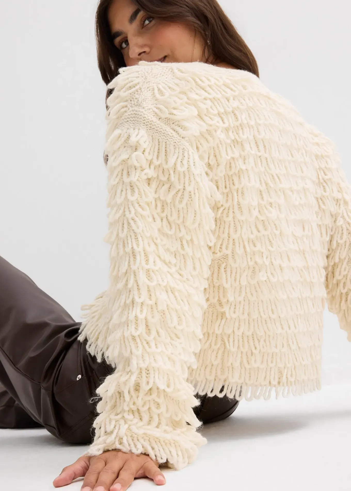 Gilet tendance en grosse maille, épaules descendues