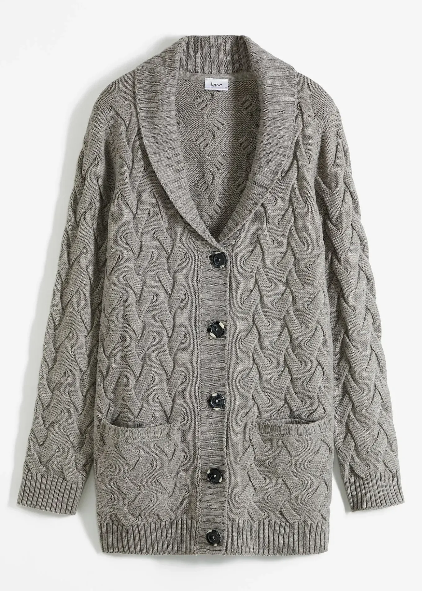 Cardigan long douillet avec patte de boutonnage, col châle et poches plaquées