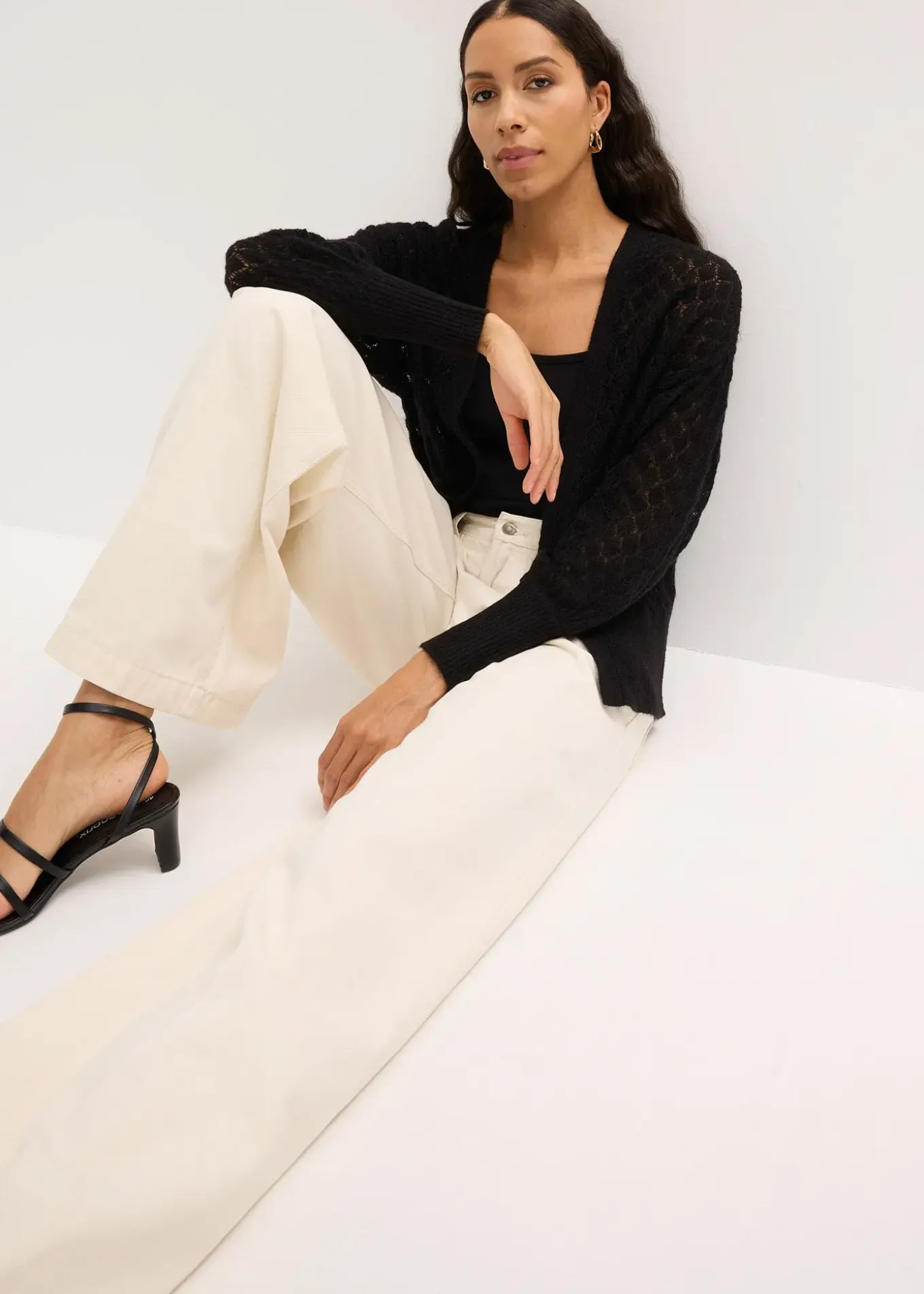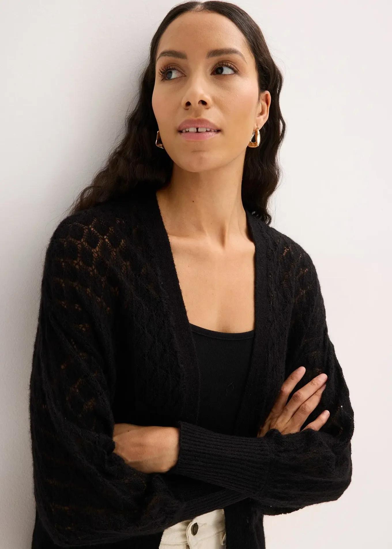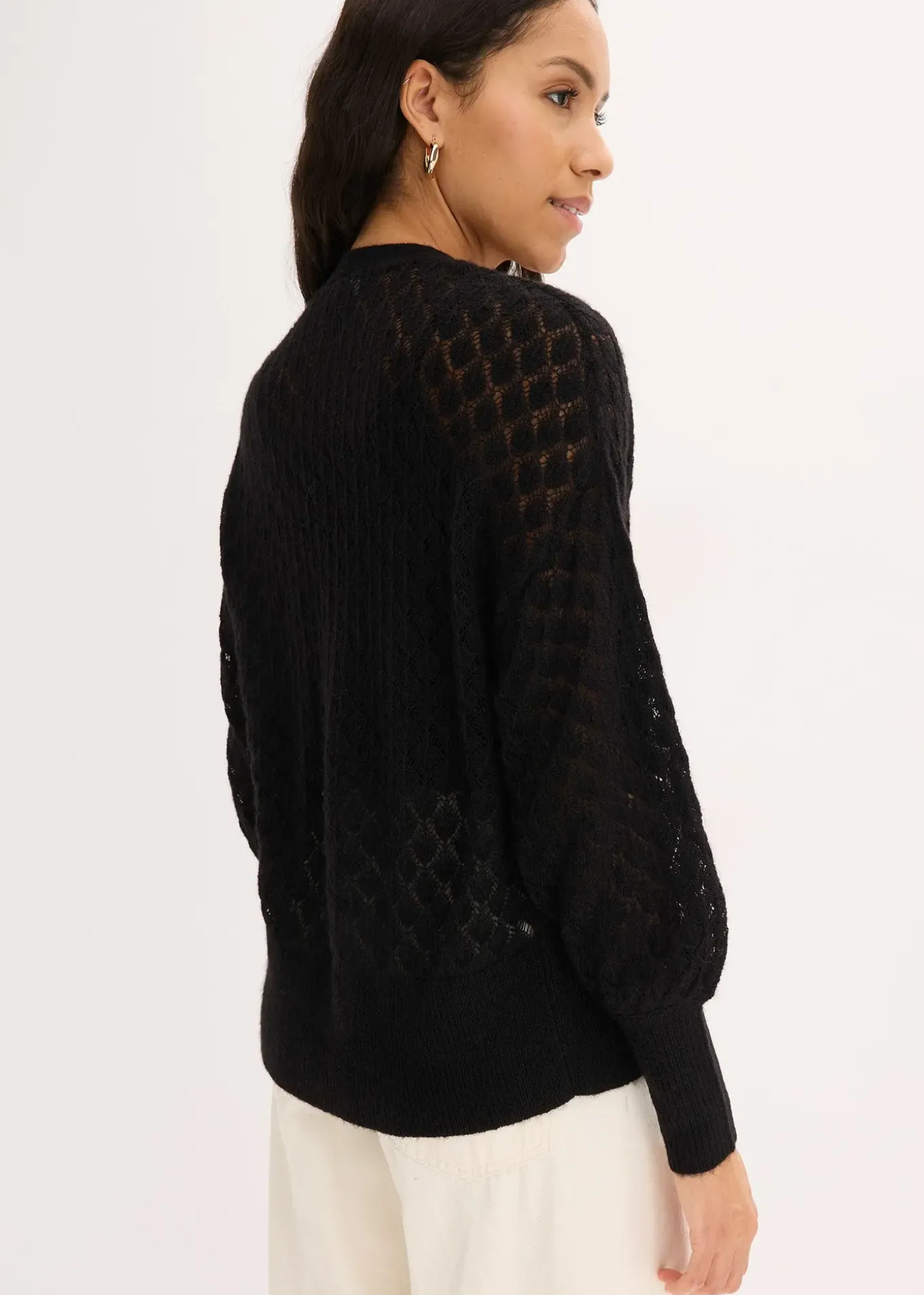 Gilet en maille ajourée à manches légèrement ballon