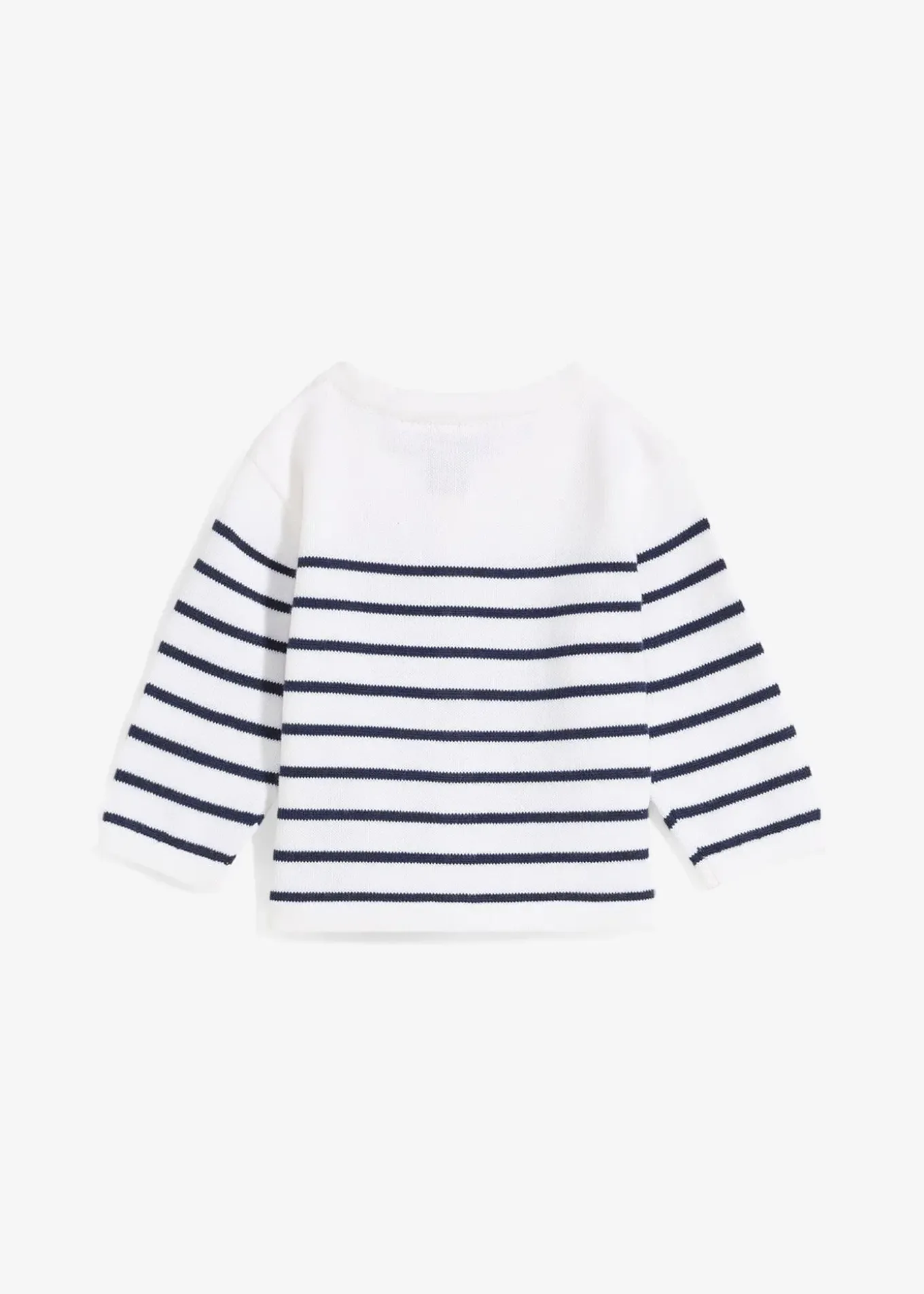 Gilet bébé en maille en coton mélangé, style marin avec broderie cœurs