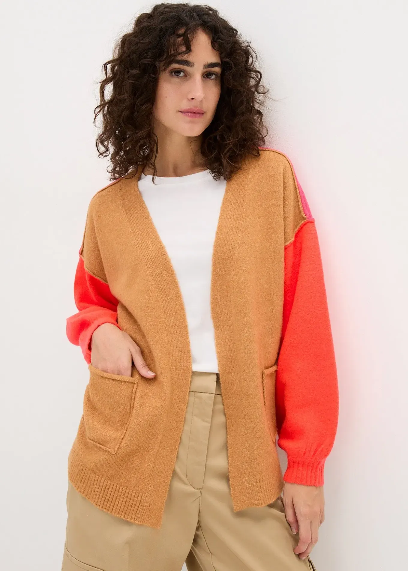 beige crème/orange fluo/rose foncé
