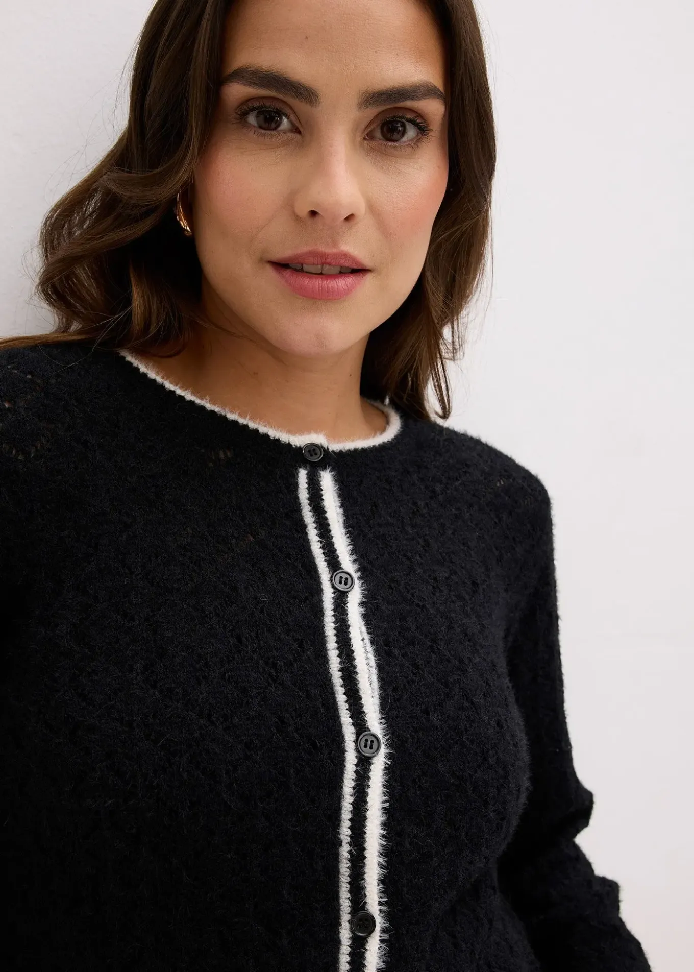 Gilet élégant en maille poilue ajourée