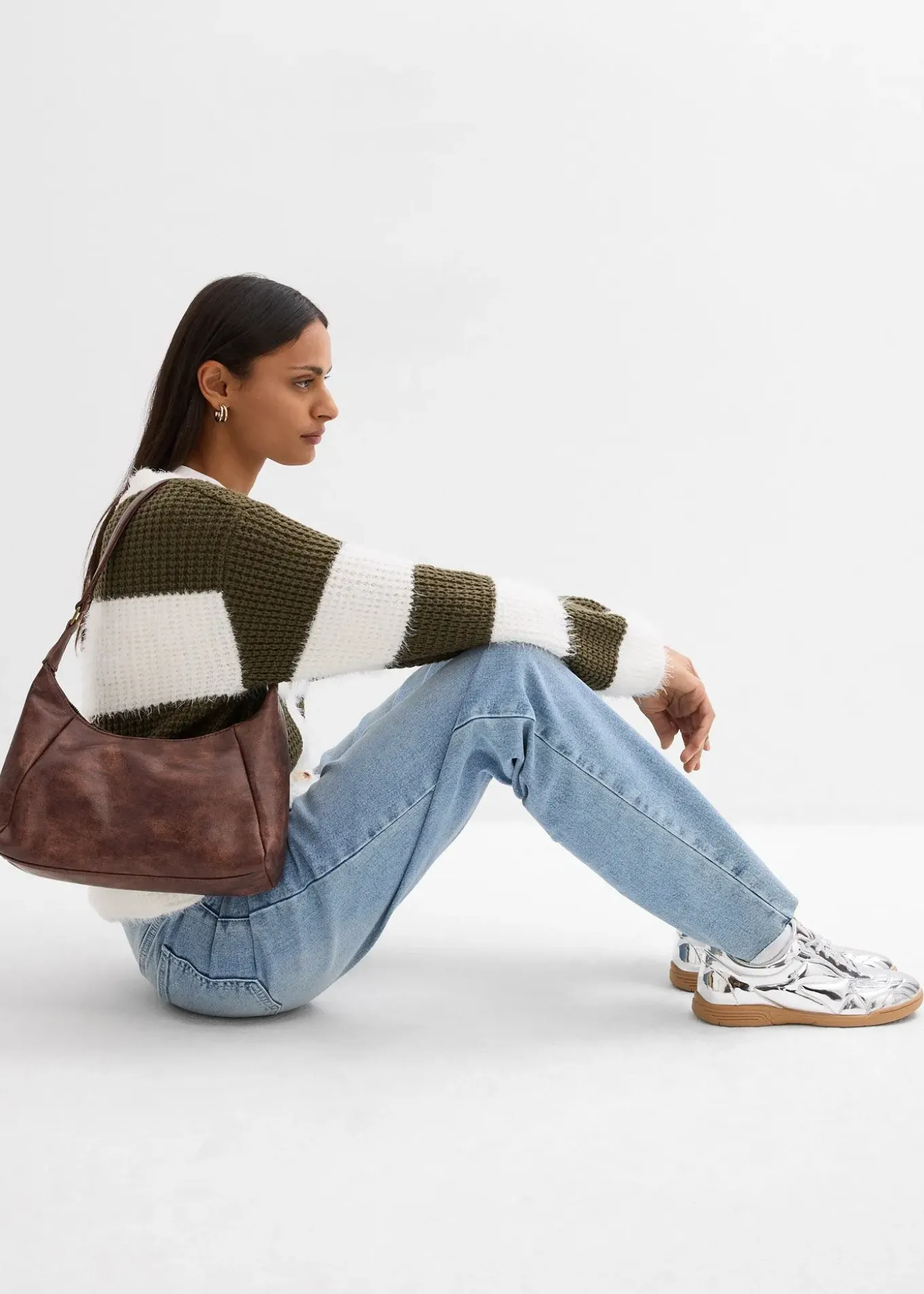 écru/olive foncé rayé