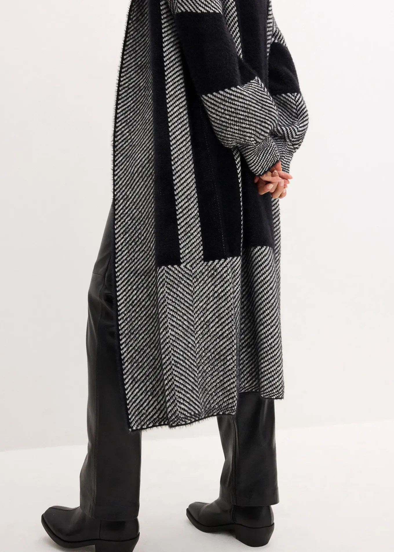 Long gilet féminin en maille à motif graphique
