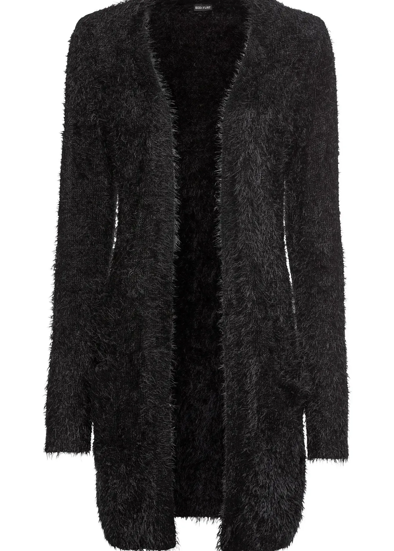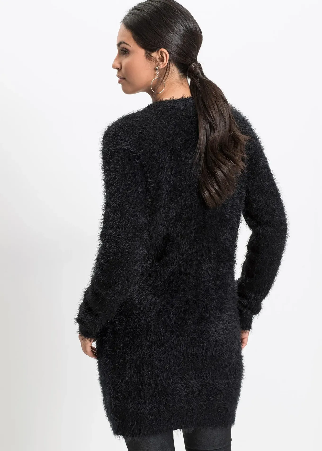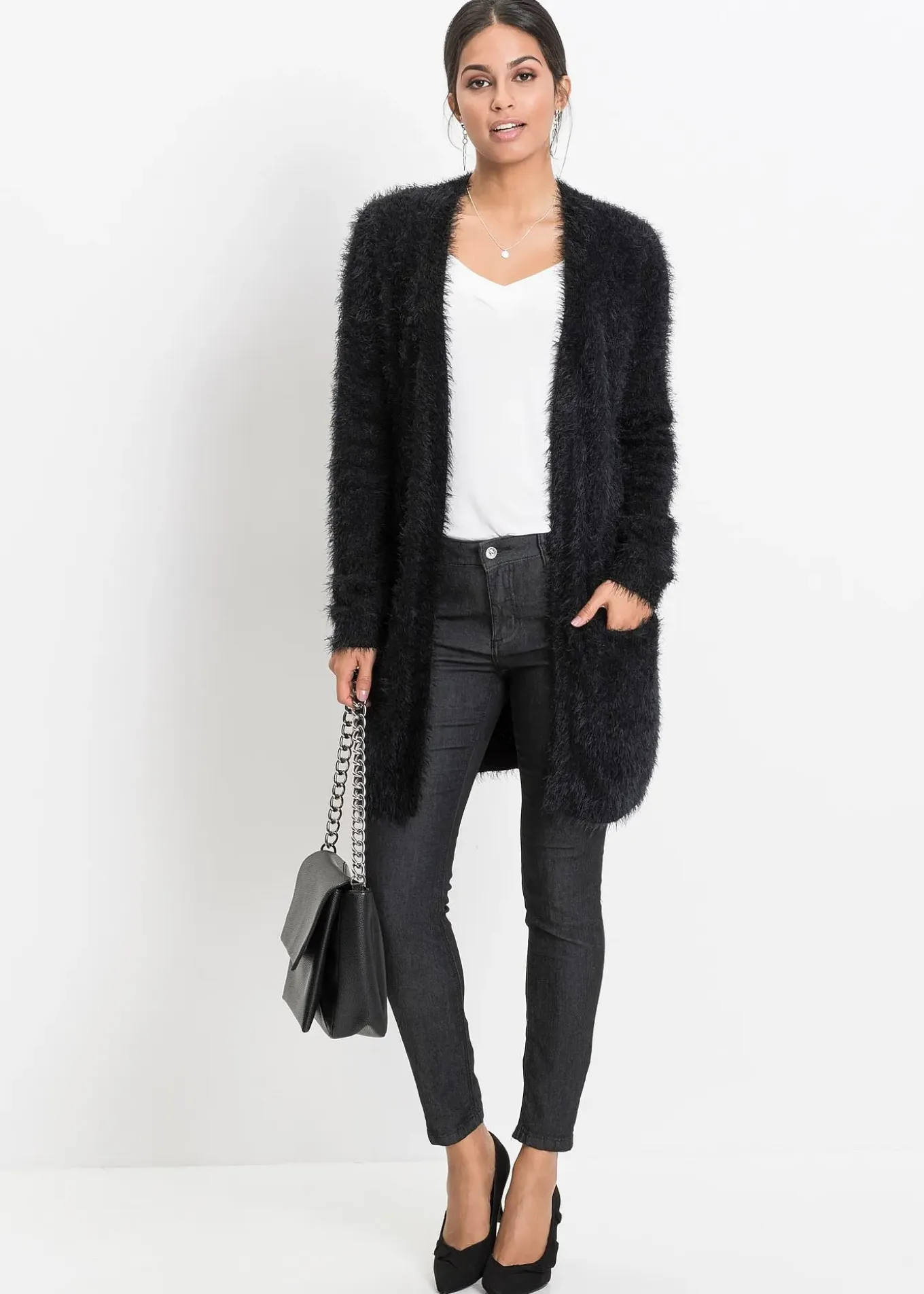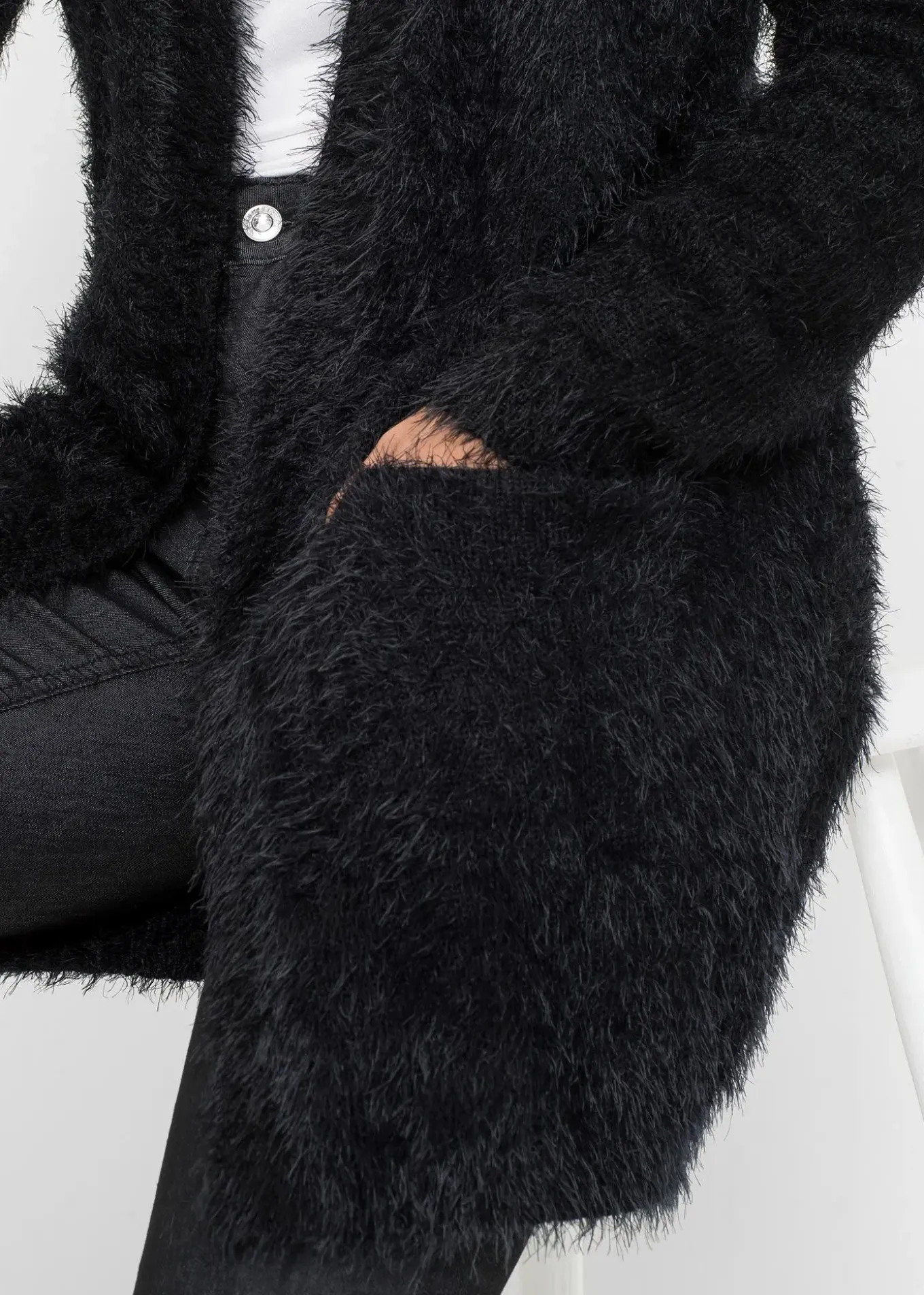 Gilet en maille à manches longues d’aspect duveteux avec poches latérales pratiques. Long. env. 86 cm, lavage machine.