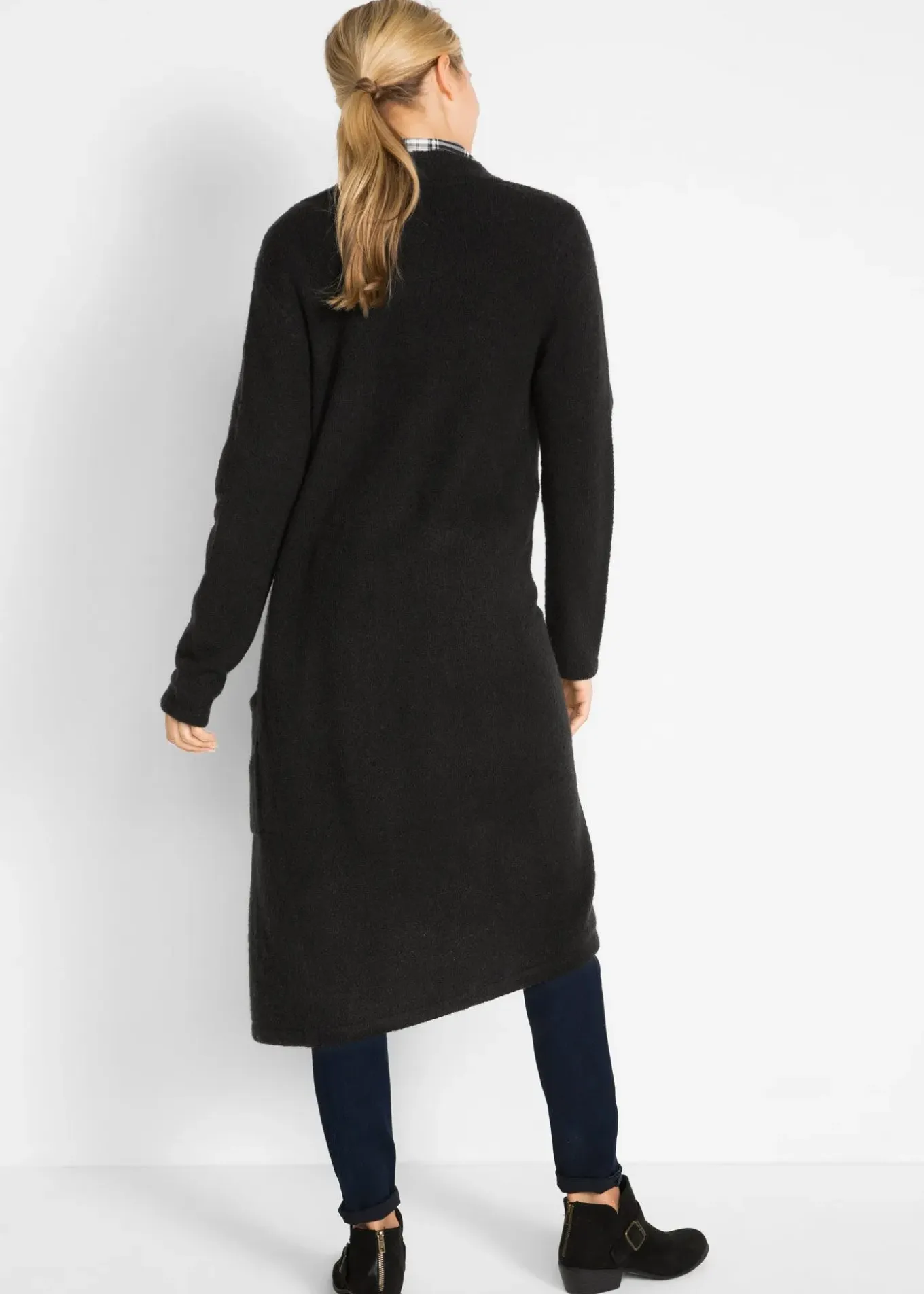 Gilet long en maille en fil douillet, à la longueur flatteuse