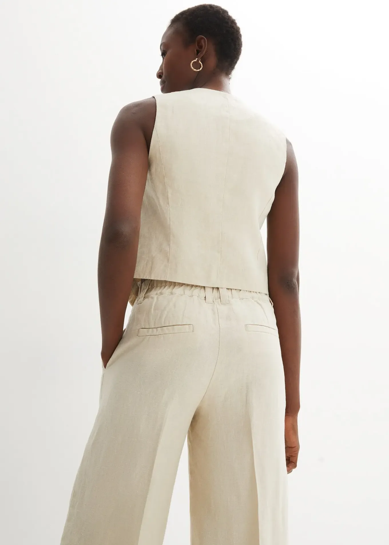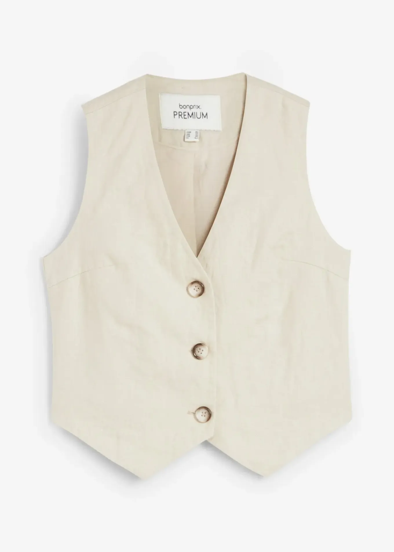 Gilet sans manches premium en lin avec doublure en coton agréable