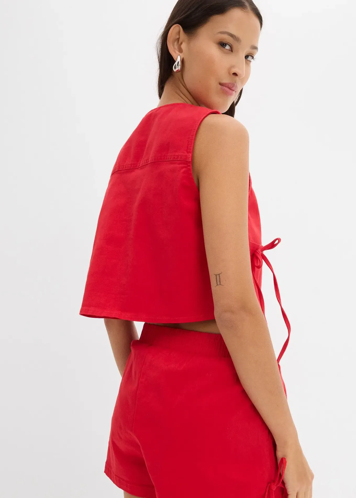 Gilet sans manches tendance en twill avec des poches plaquées et des boutons