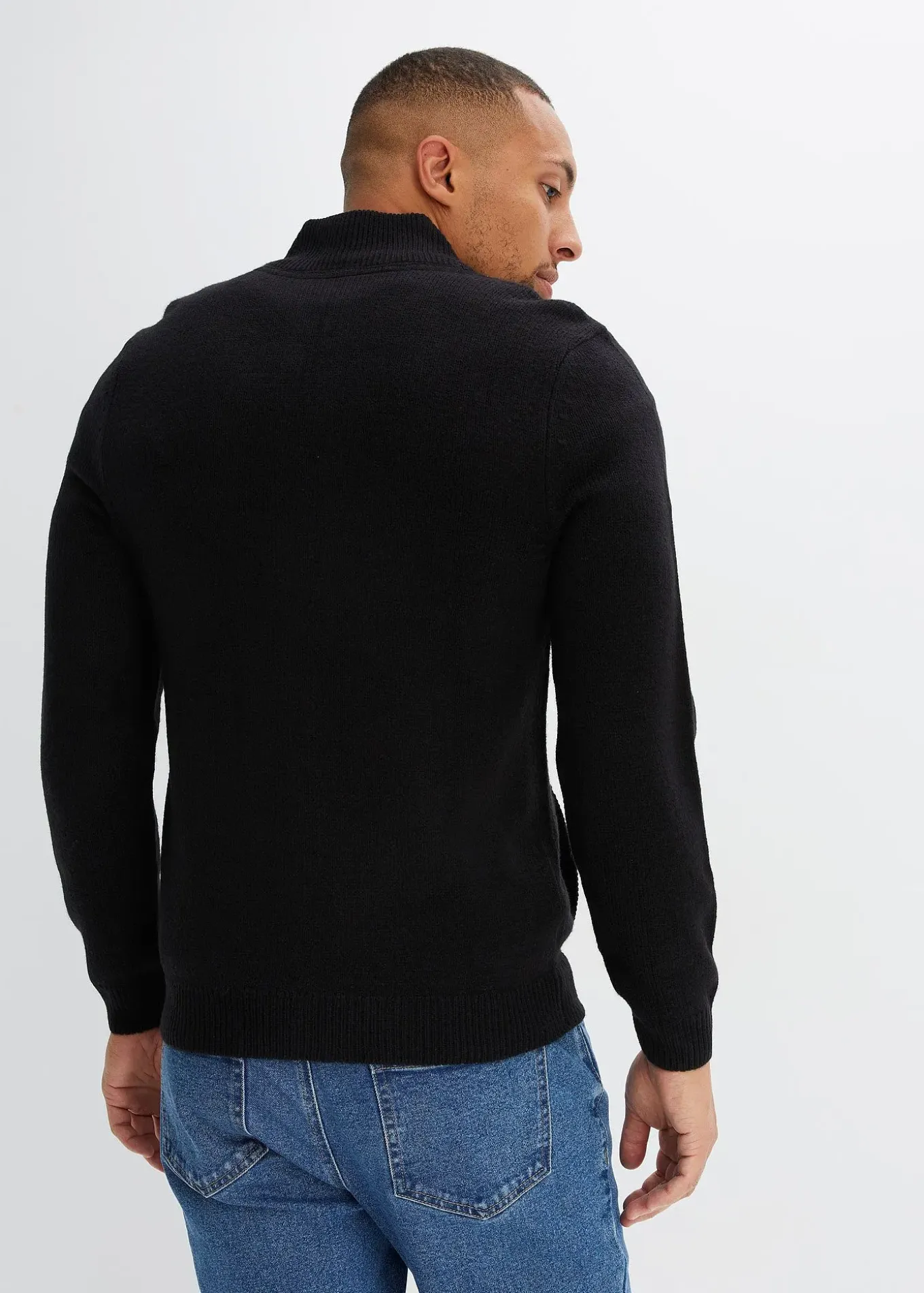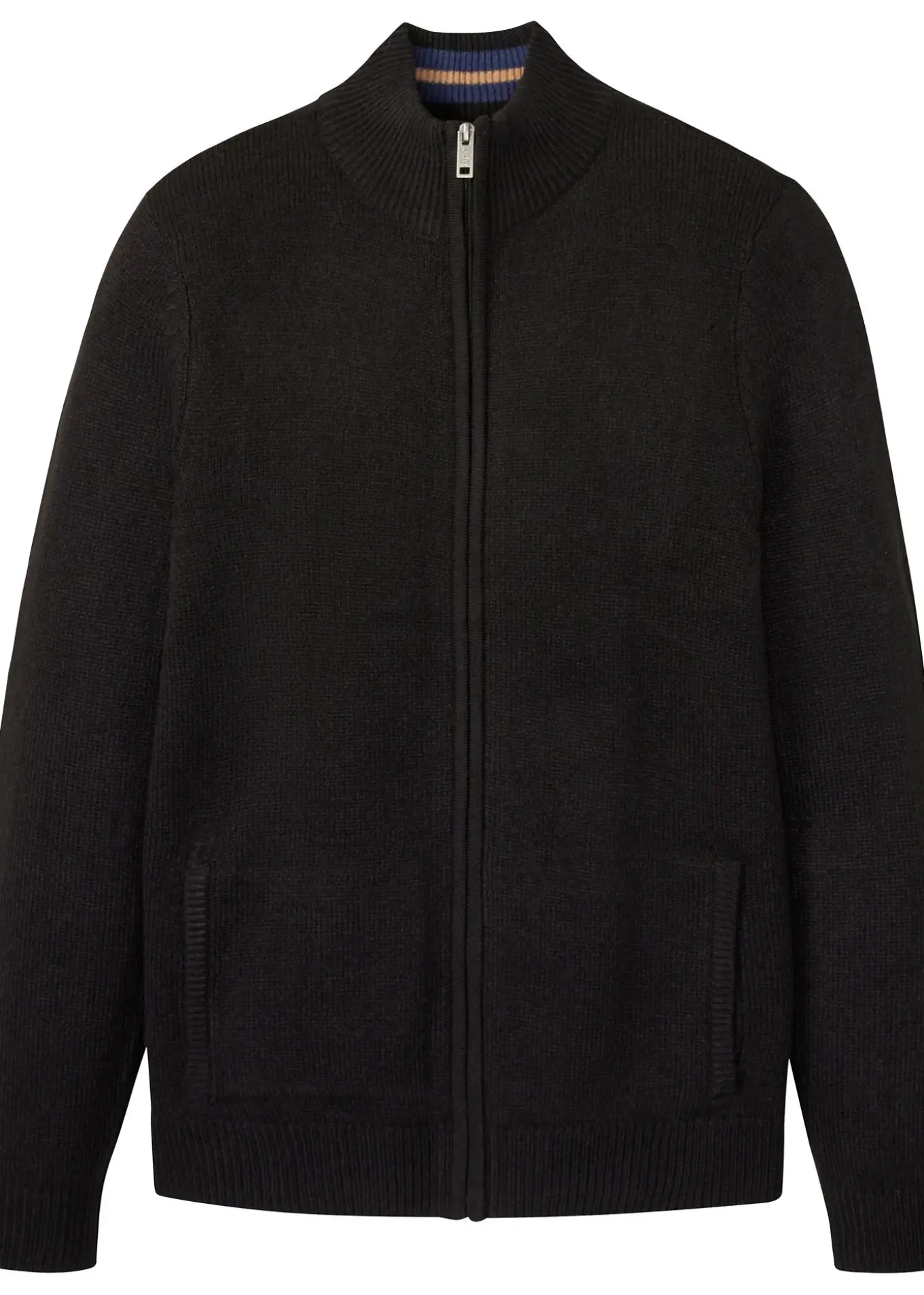 Gilet en maille à col montant et fermeture zippée devant.