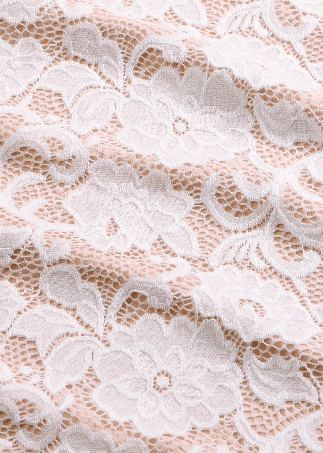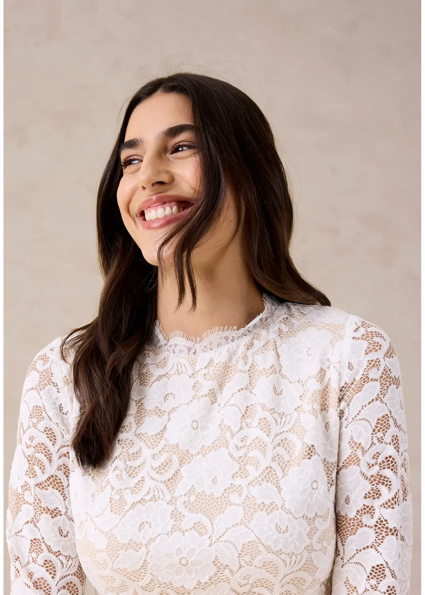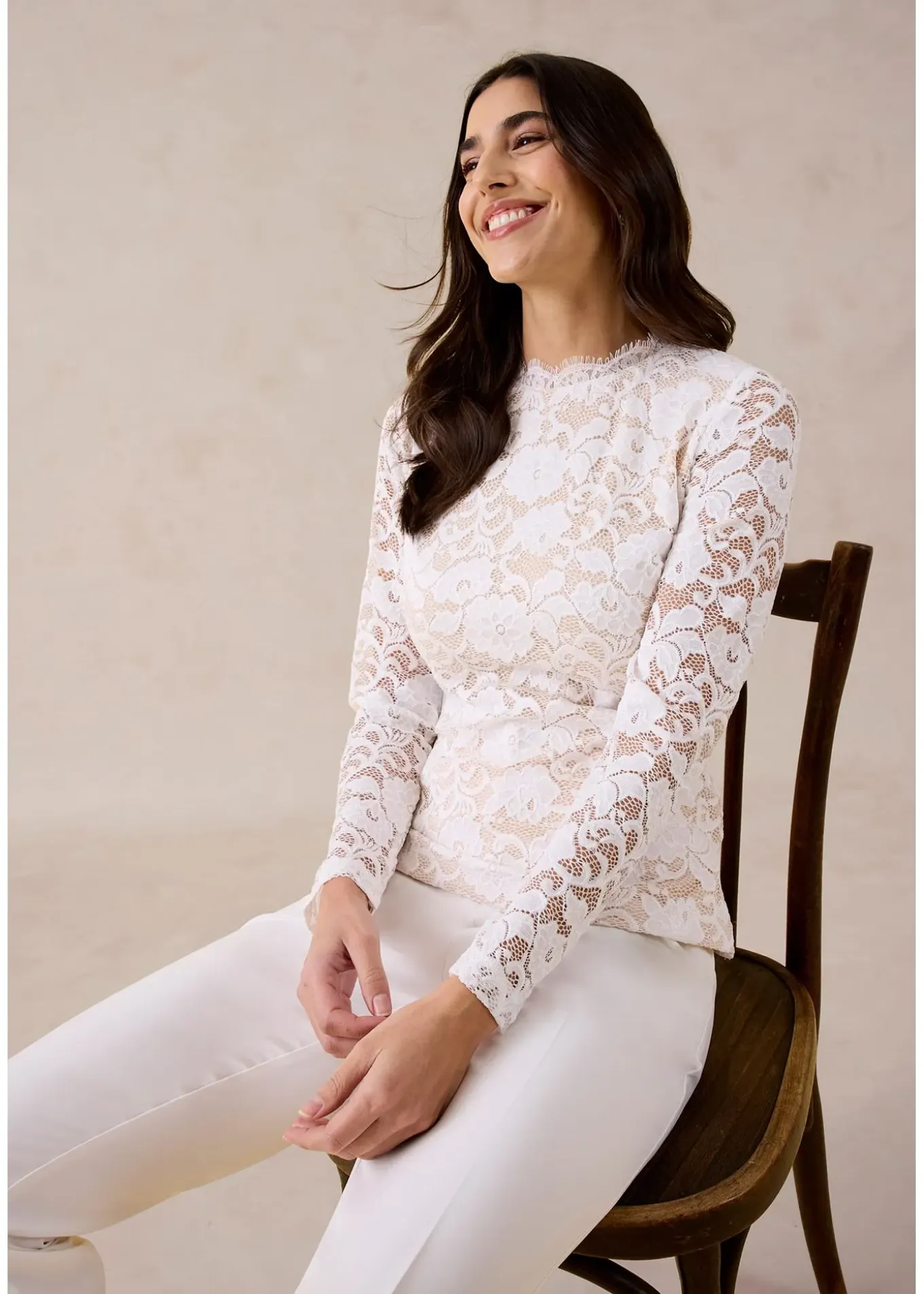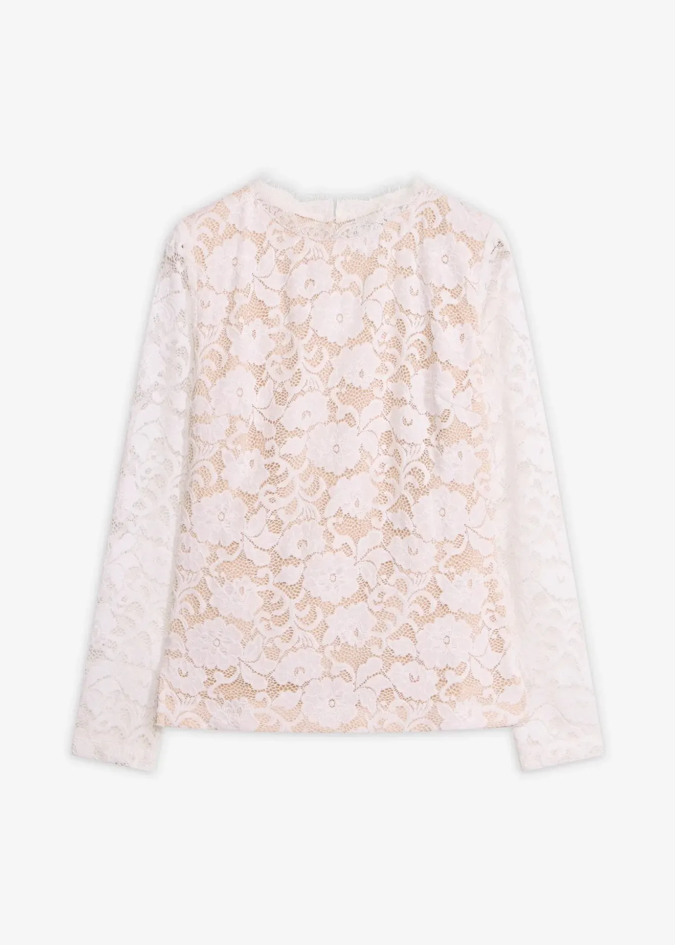 Haut manches longues romantique et féminin en dentelle florale avec une doublure couleur chair