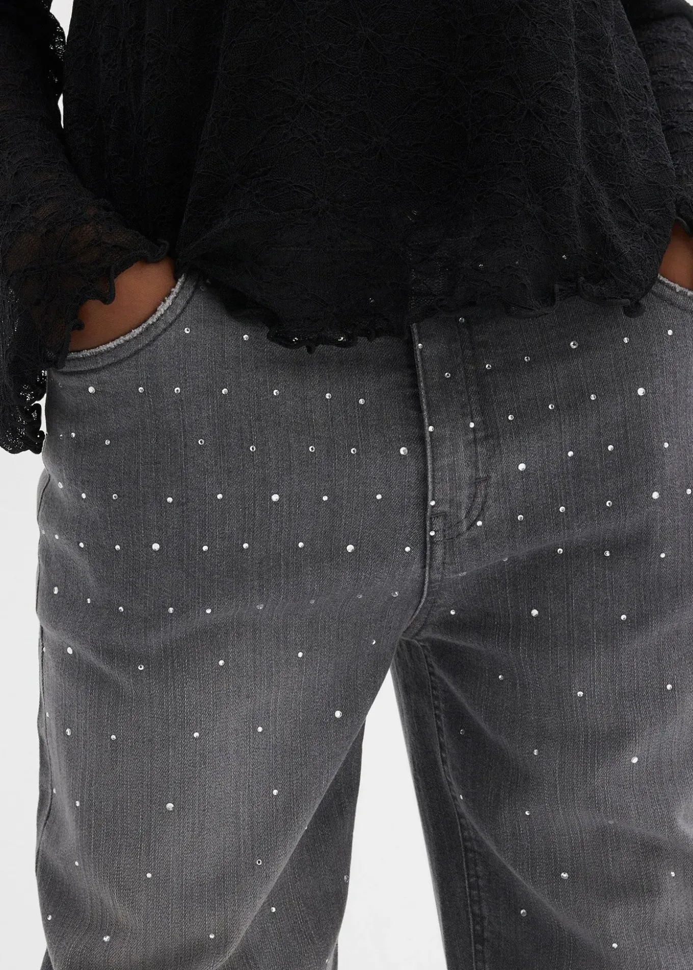 Jean ample taille mi-haute, orné de strass, pour fille