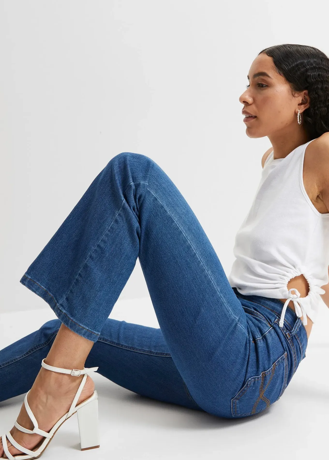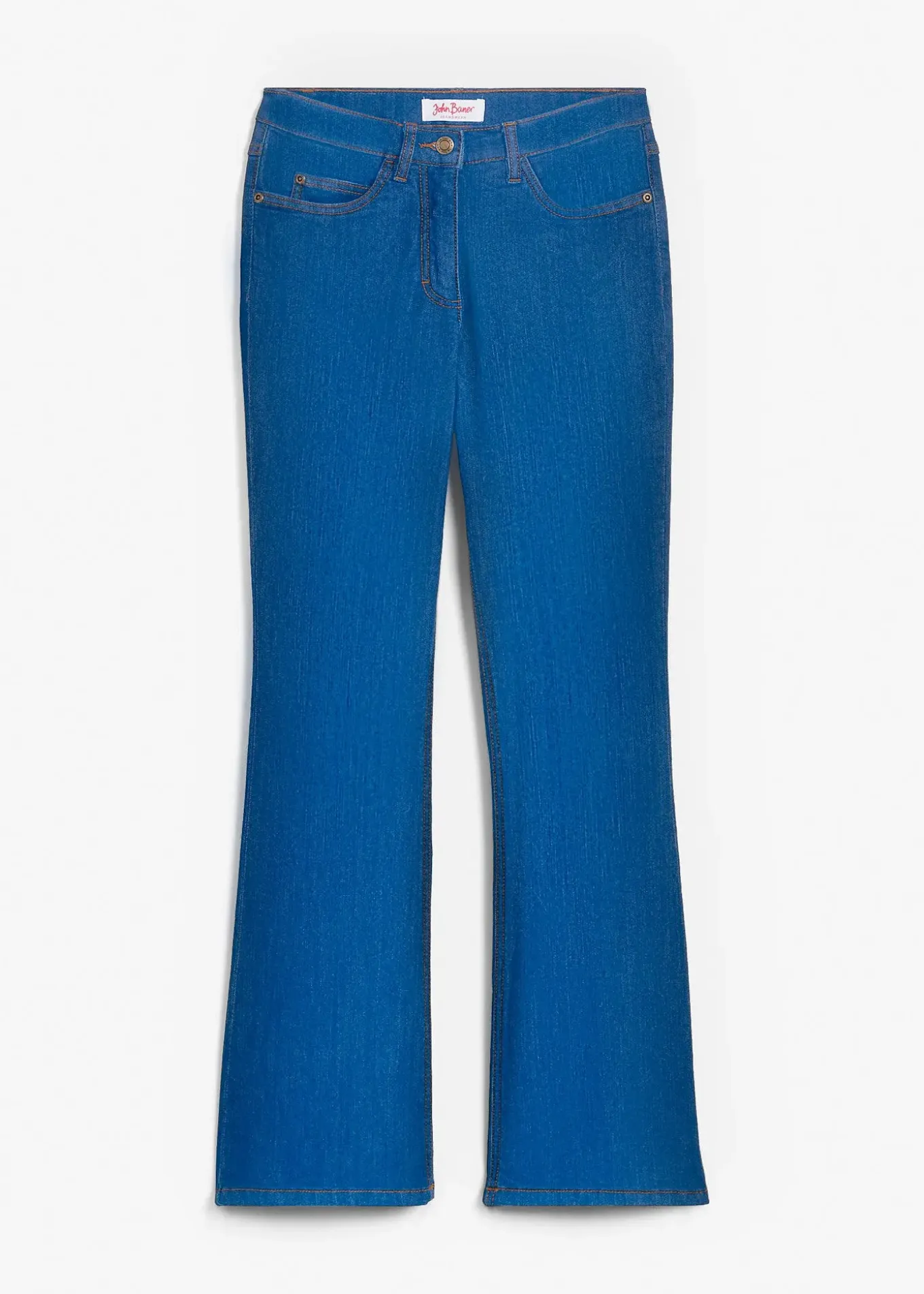 Jean extensible, Bootcut, style 5 poches, taille de hauteur confortable, cuisses normales, jambes évasées, différentes longueurs d’entrejambe, lavage machine.