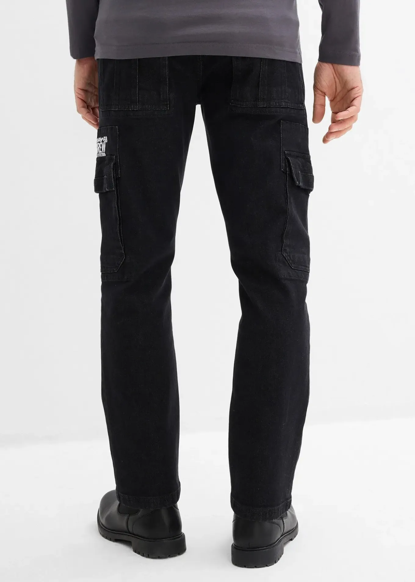 Jean cargo décontracté avec taille élastiquée, poches pratiques et toile légèrement délavée