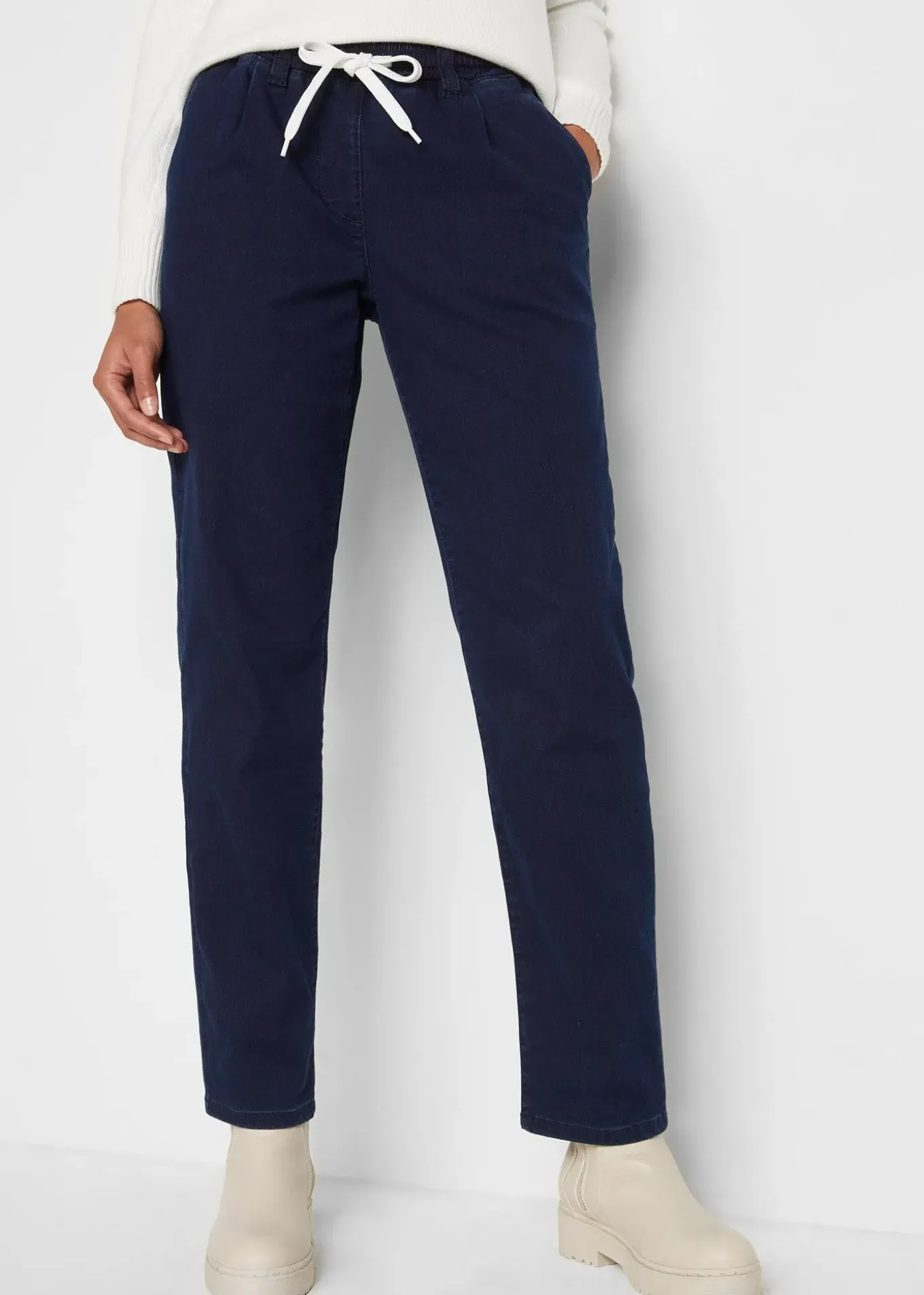 Jean chaud mode à motif losange sur la jambe et taille élastiquée