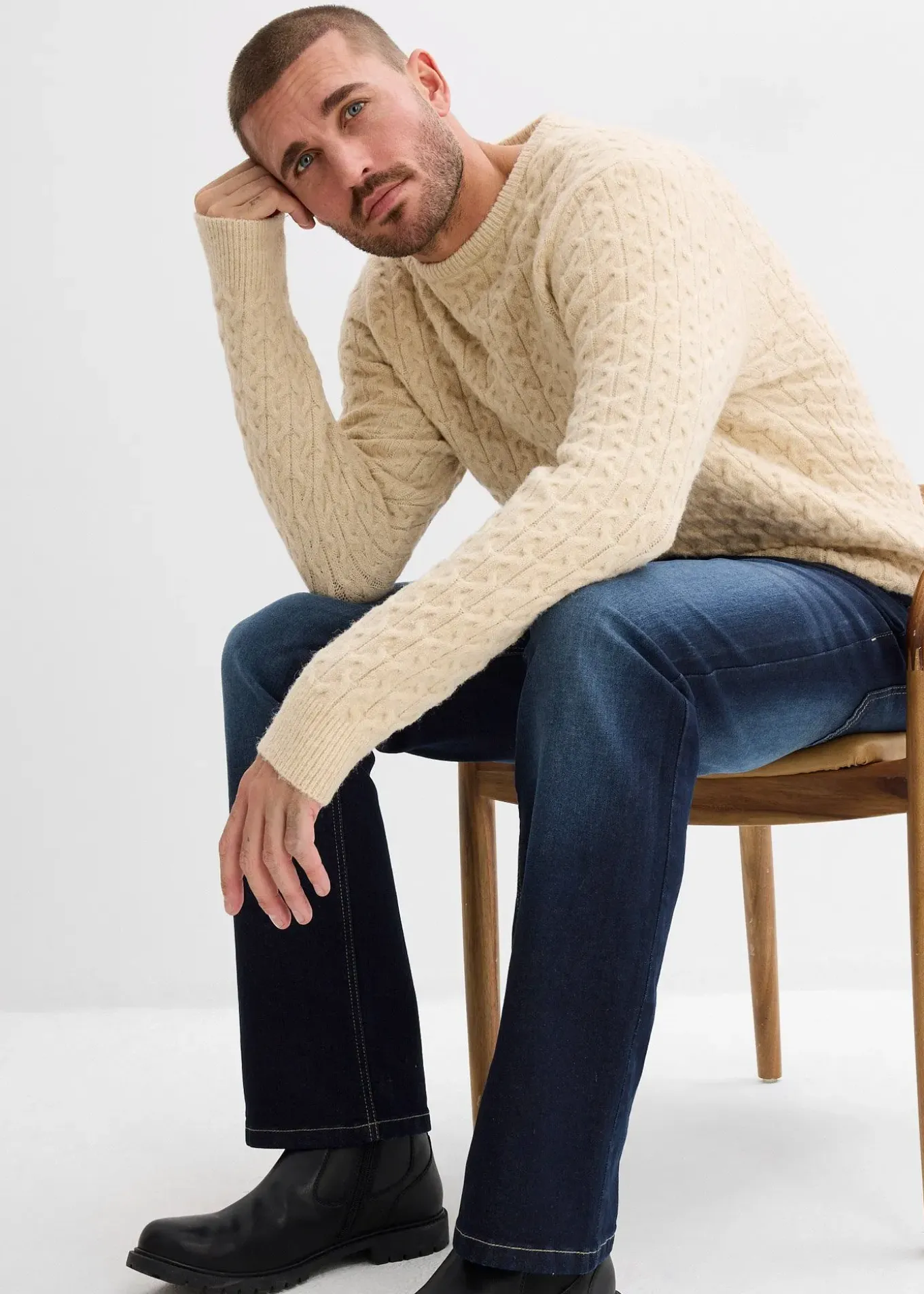 Jean bootcut classique et intemporel à taille élastiquée et effets used discrets