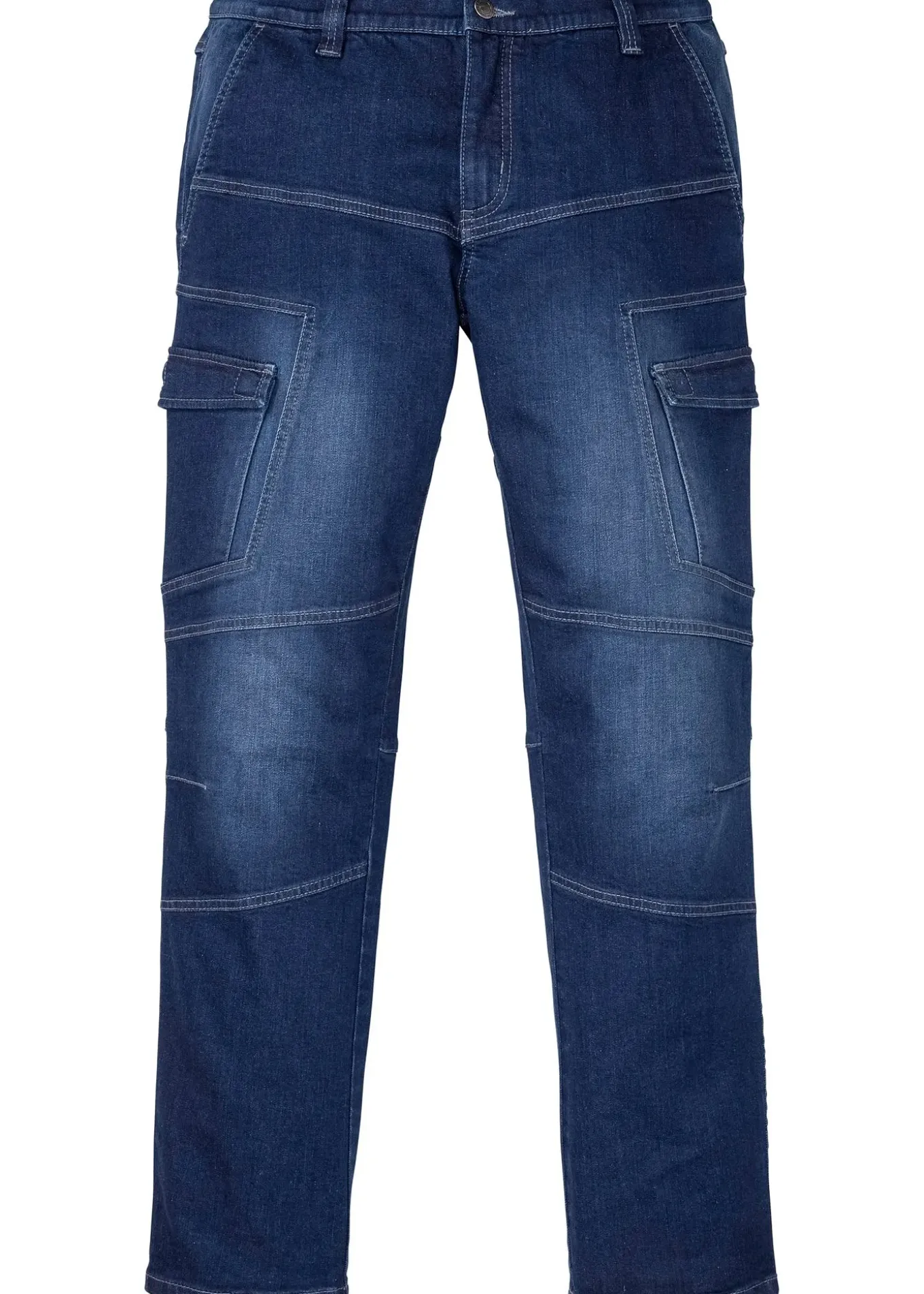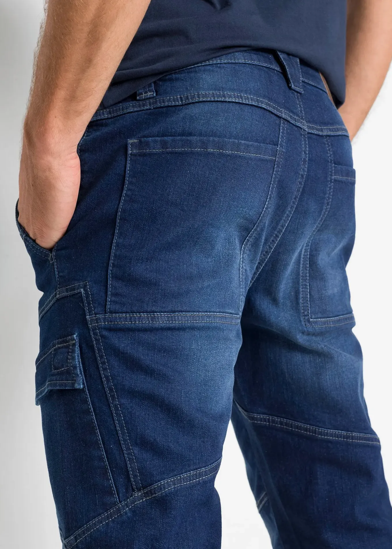 Jean cargo homme extensible regular, coupe droite avec coutures d’empiècement marquantes