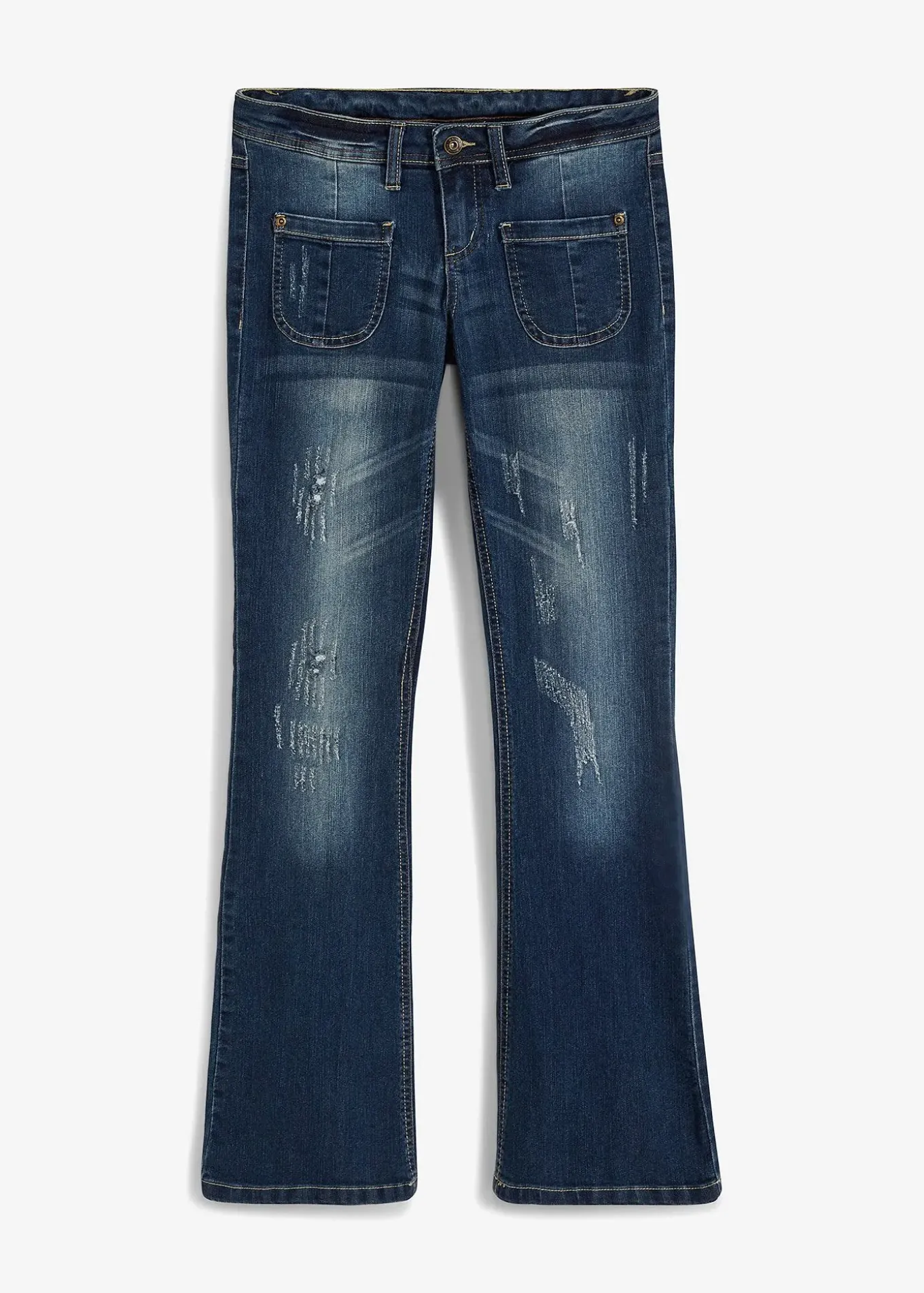 Avec délavage tendance et poches plaquées devant. Long. entrejambe env. 83,5 cm.