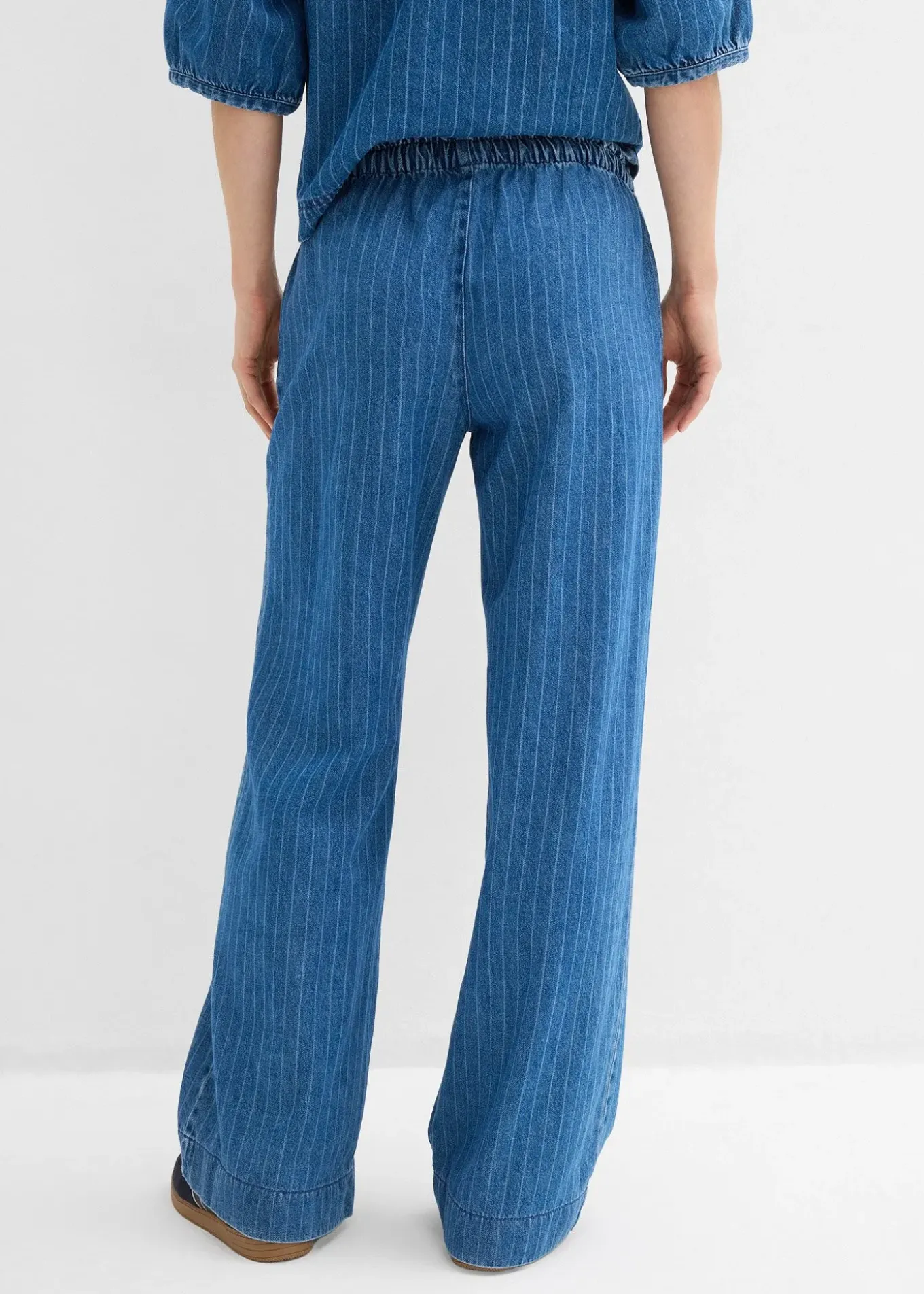 Jean large à rayures, taille mi-haute