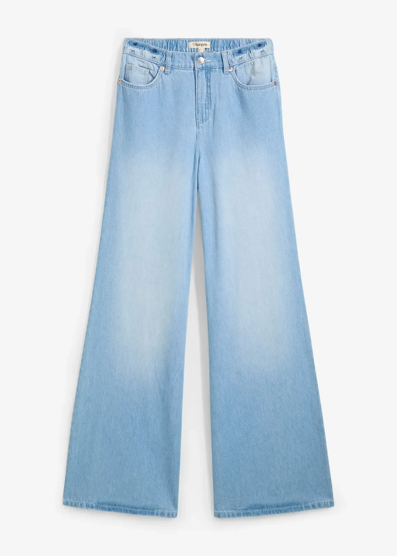Jean large à taille haute élastiquée. Modèle 5 poches en toile de coton rigide au début mais qui s’assouplit au fil des ports. Taille haute avec braguette zippée et bouton. Jambes ultra-longues et larges qui traînent légèrement par terre. Longueur entrejambe env. 82,5 cm, lavage machine.