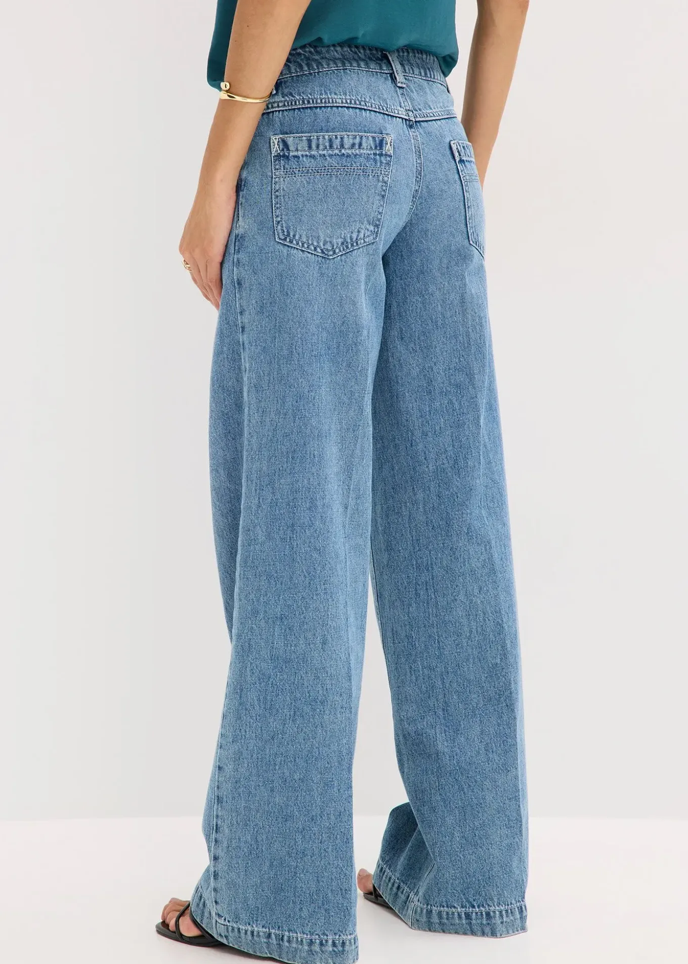Jean large taille mi-haute avec pinces blanchies