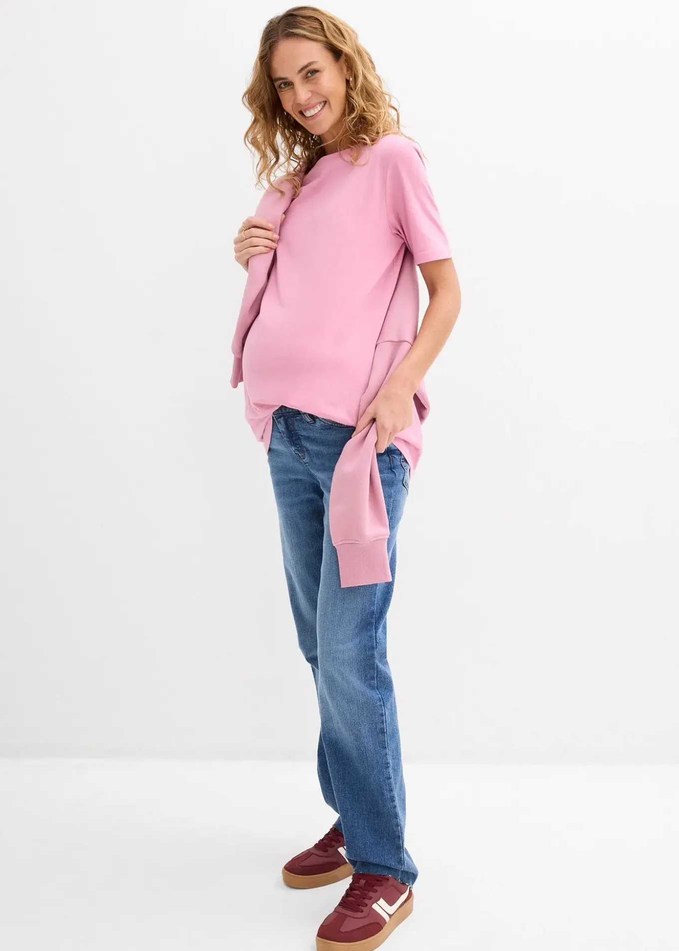 Jean 5 poches en toile extensible pour un grand confort pendant la grossesse et après. Taille basse et ajustable par un élastique à l’intérieur pour un ajustement optimal. Jambe droite et loose. Ourlet à cru en bas de jambe et marquage sur l’envers pour faciliter le découpage à la longueur souhaitée avec pattes de maintien évitant le roulottage.