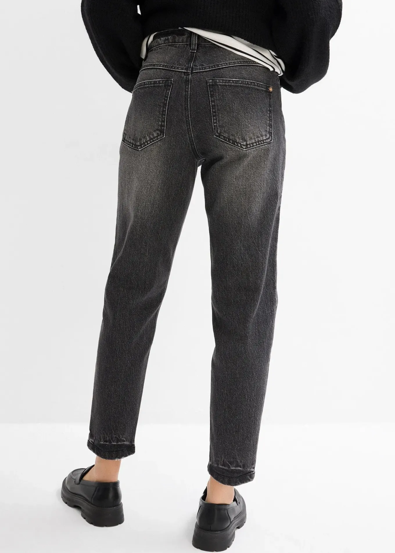 Jean mom taille haute en denim de coton épais qui s’assouplit au fil des utilisations et des lavages.