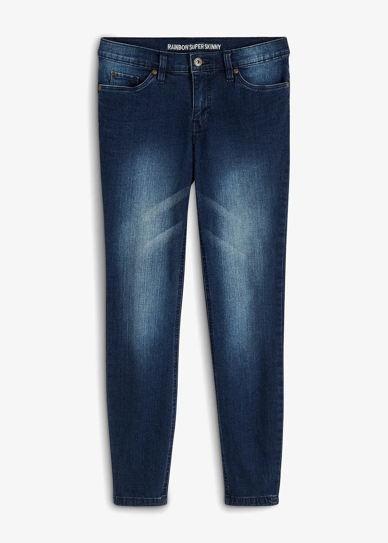 Jean skinny stylé à cinq poches avec un délavage cool et des plis permanents. Coupe 7/8 très tendance.