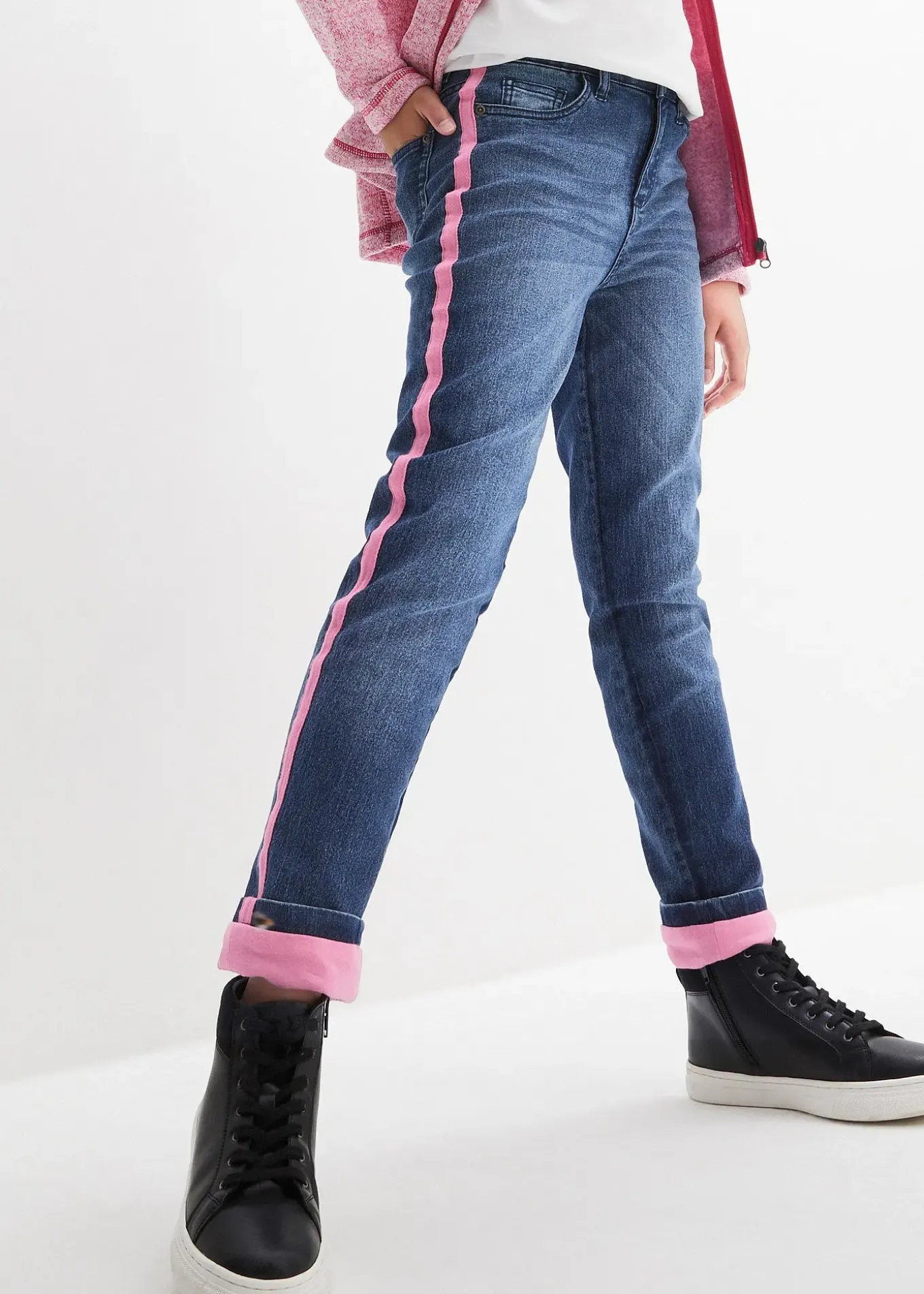 Jean thermique fille taille mi-haute avec doublure en jersey
