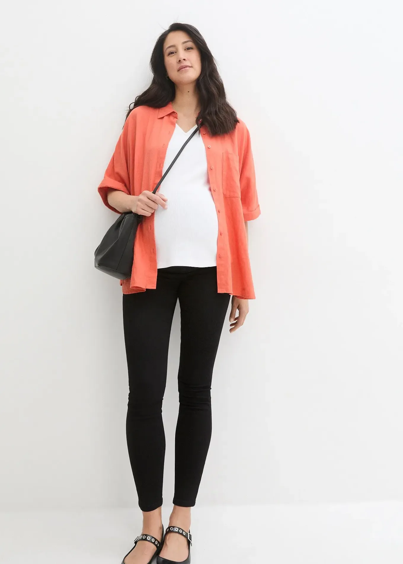 Ce jean de grossesse près du corps coupe 5 poches est confectionné dans une matière élastique pour offrir un confort élevé. Le bandeau élastique au niveau du ventre offre un soutien agréable, il s’adapte à votre ventre et s’ajuste en largeur. Ce jean peut ainsi se porter pendant toute la grossesse.