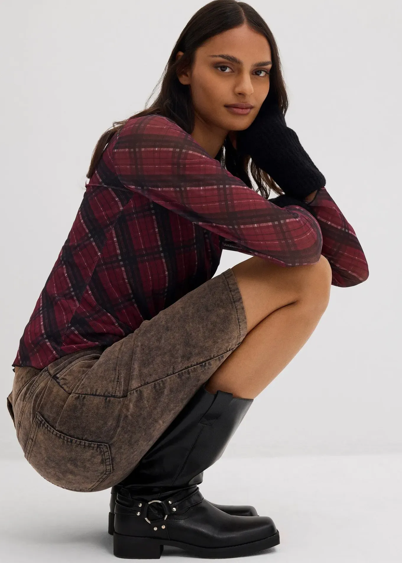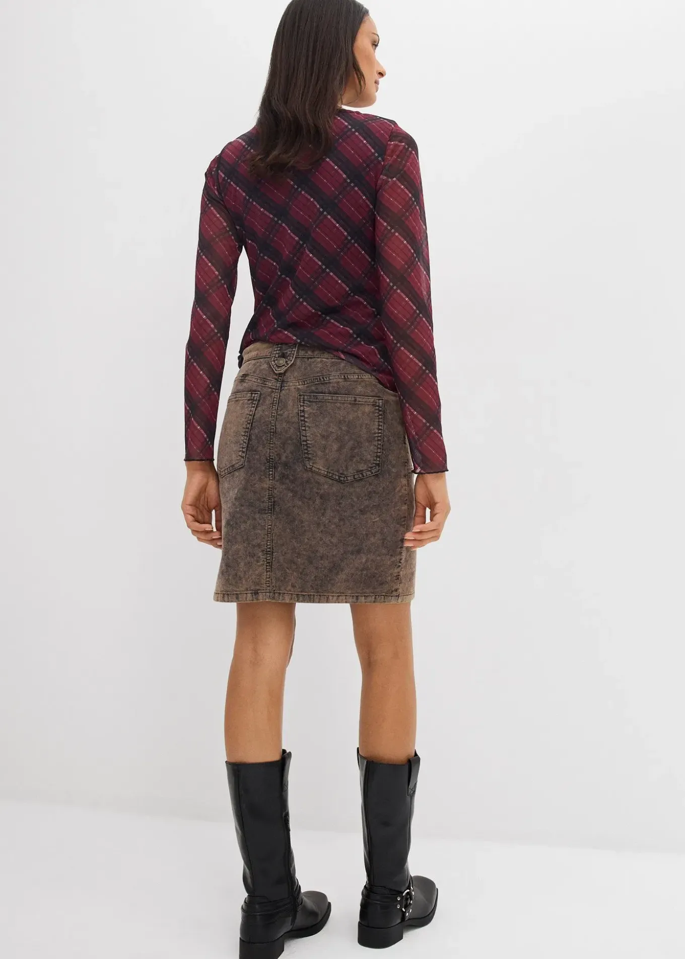 Jupe courte en velours côtelé délavé, avec poches