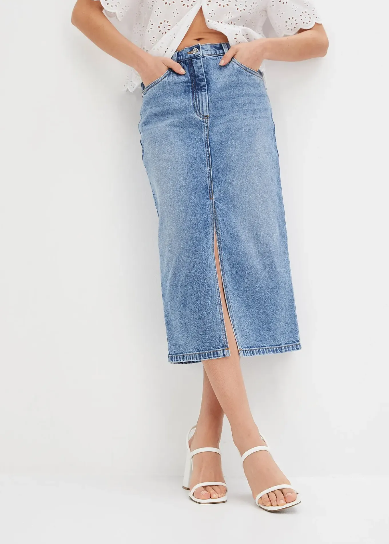 Jupe en jean midi stylée avec fente pratique