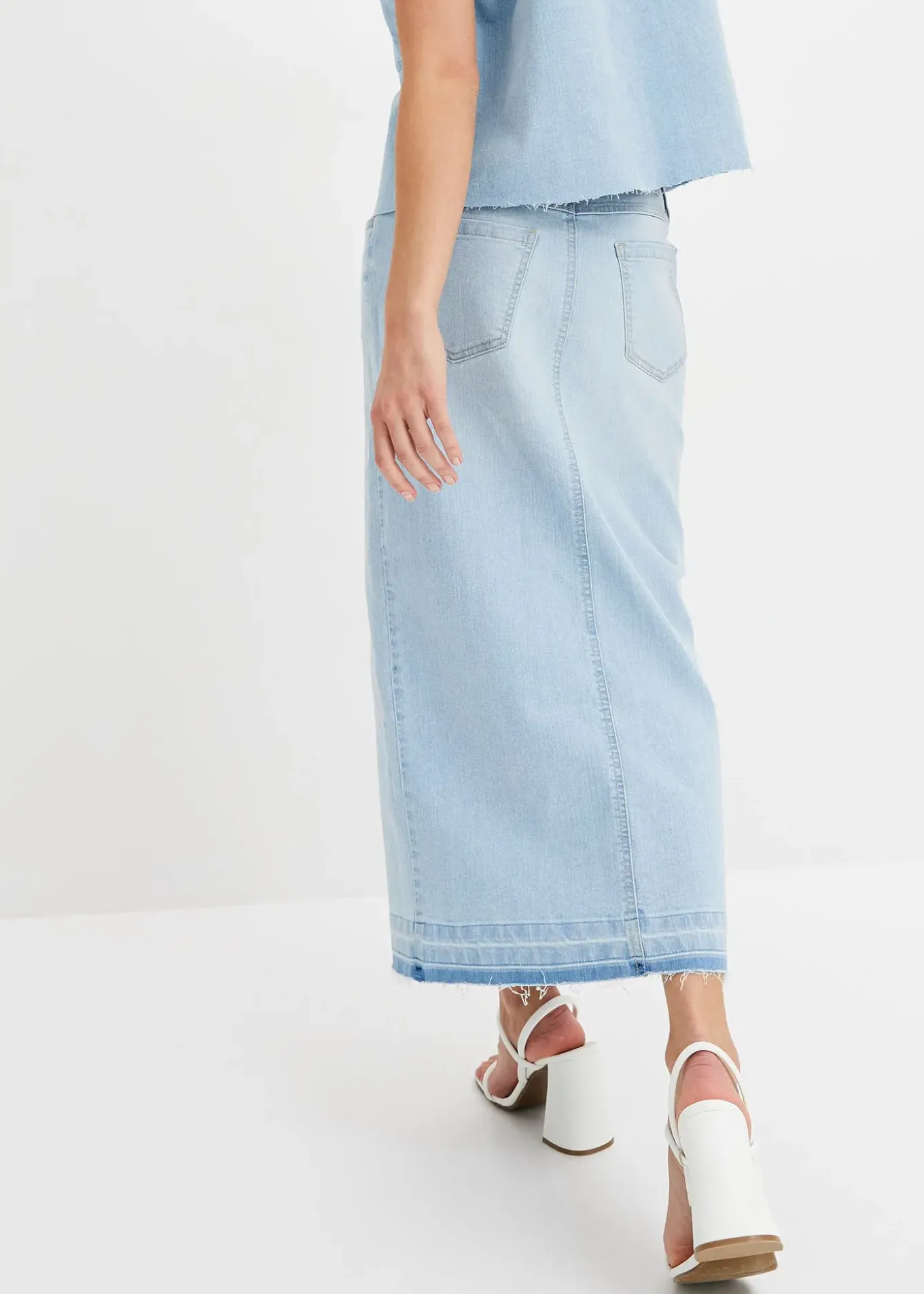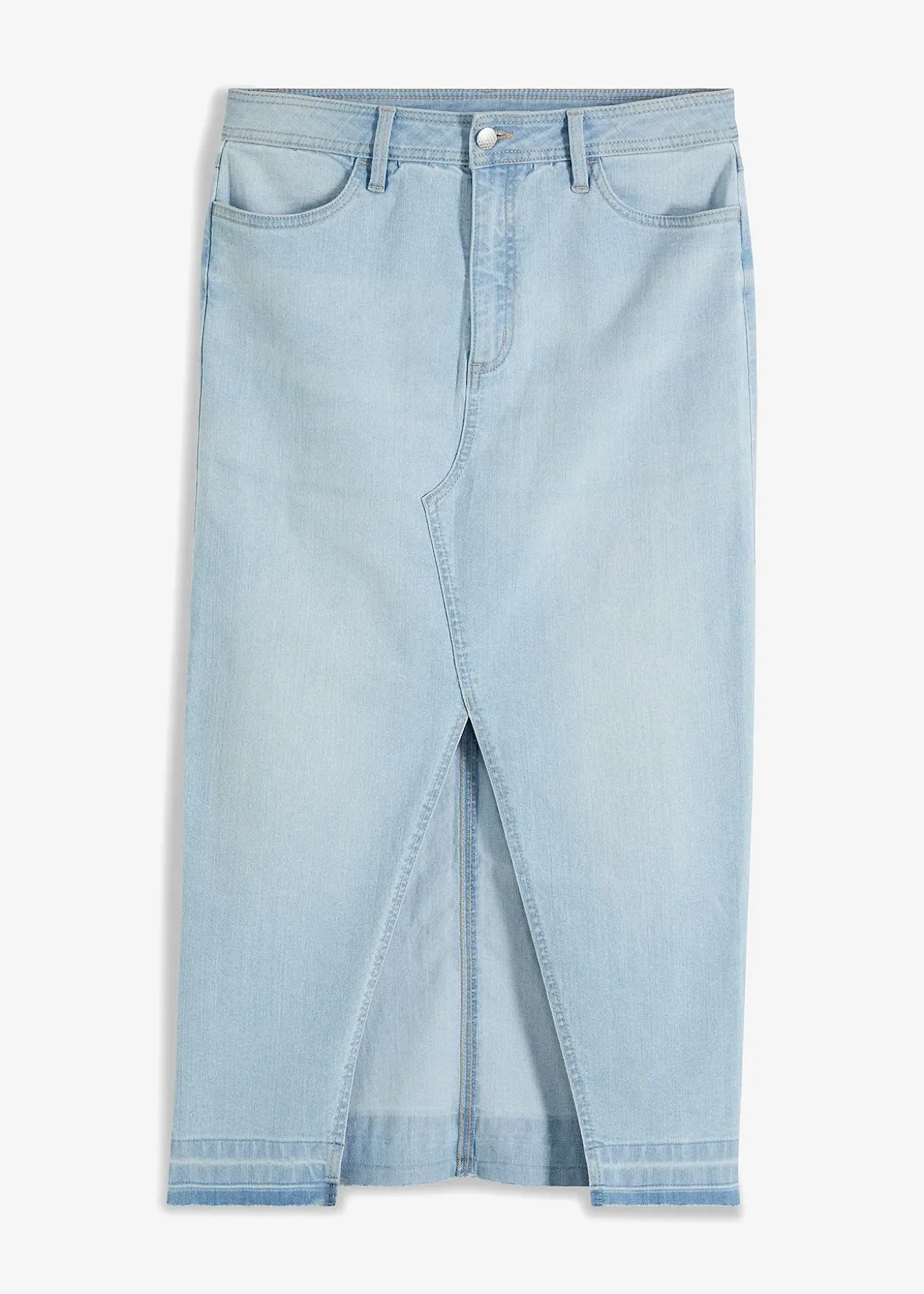 Jupe en jean fendue devant à ourlet ouvert et effiloché