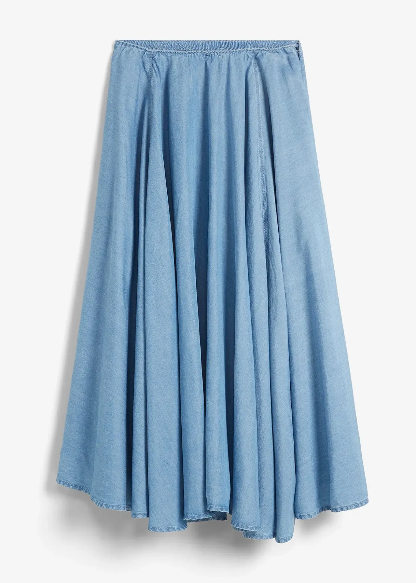Jupe midi en jean avec taille élastiquée et poches, coton