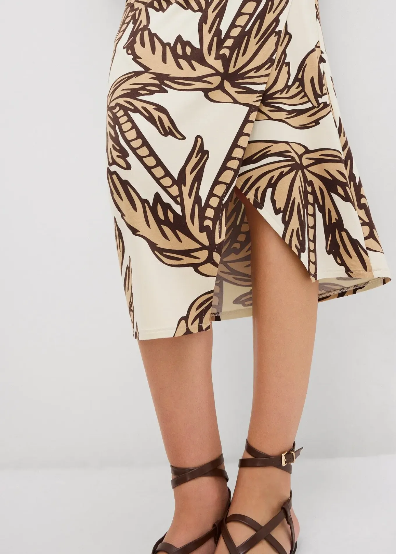 Jupe midi imprimée en jersey viscose douce avec zip sur le côté