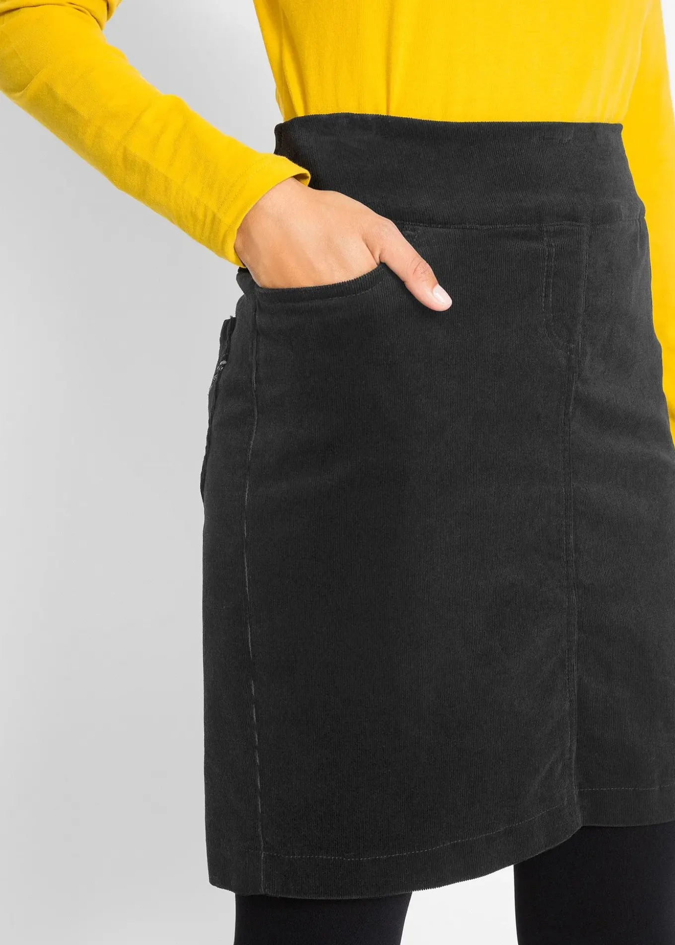 Jupe longueur genou en velours côtelé extensible à ceinture élastiquée