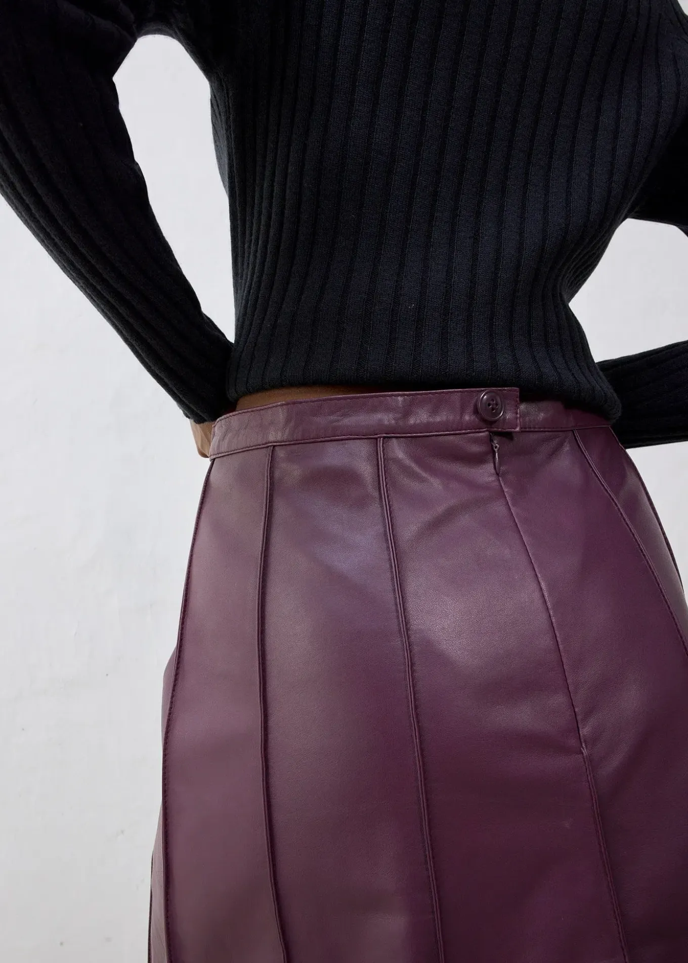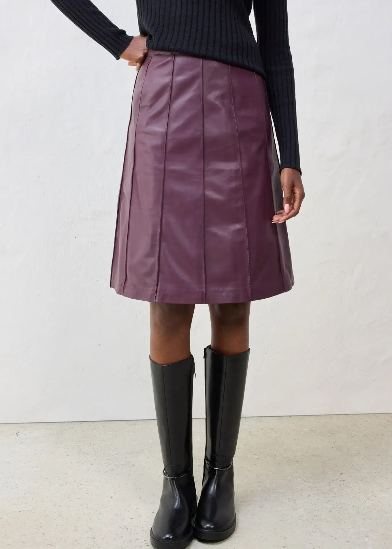 Jupe évasée tendance en cuir d’agneau nappa, avec de jolis passepoils