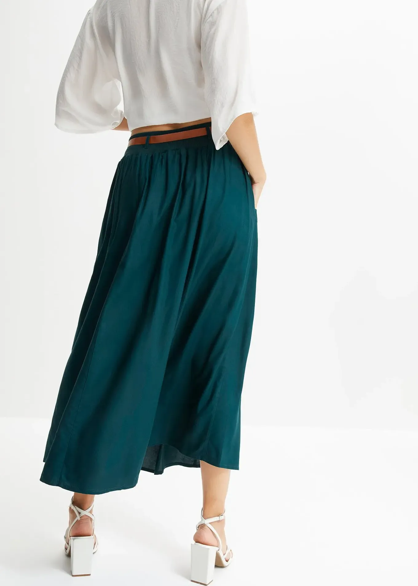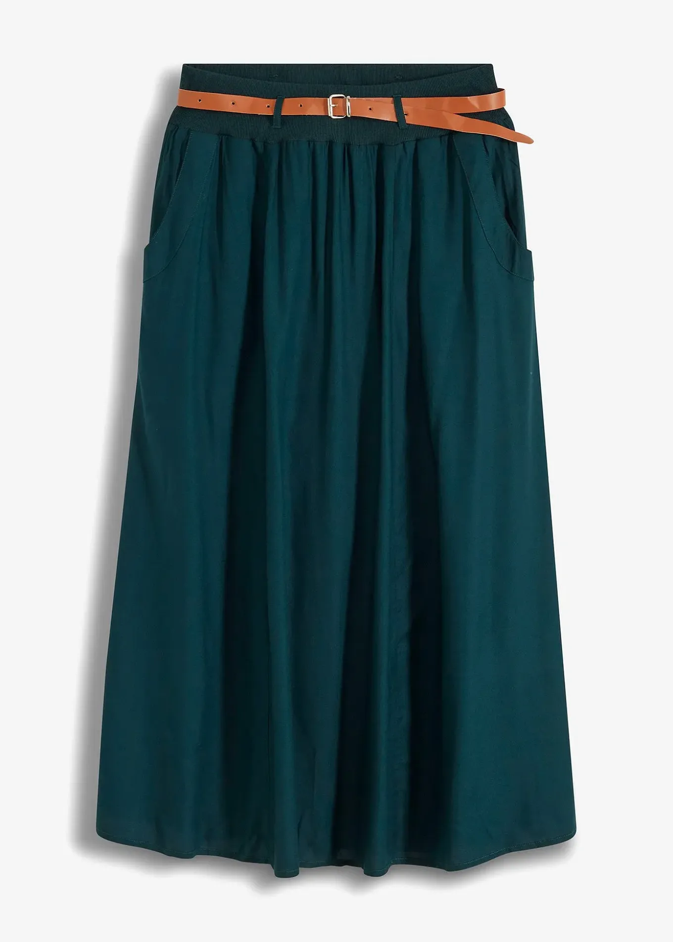 Jolie jupe longue de BODYFLIRT avec une large bande élastiquée finement côtelée et une ceinture étroite. Deux poches sur le devant, tissu fluide.