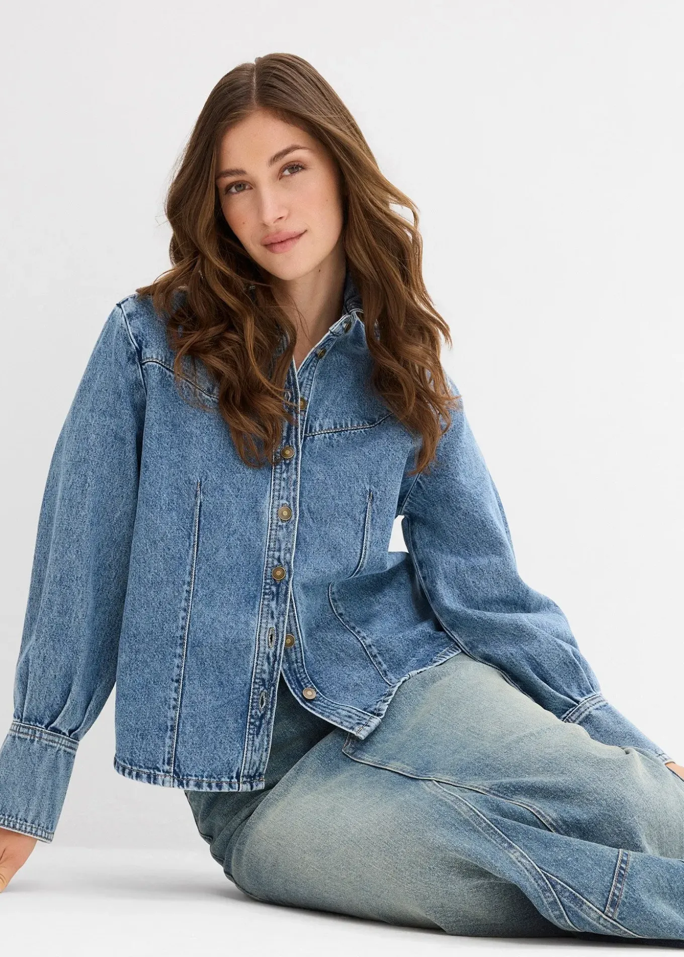 Jupe en jean en denim solide, un peu raide au toucher au début et de plus en plus souple et lâche au fur et à mesure. Finition délavée pour un effet usé très tendance. Une légère décoloration à l’usage et au lavage sont caractéristiques de cette jupe en jean. Long. env. 90 cm, lavage machine.