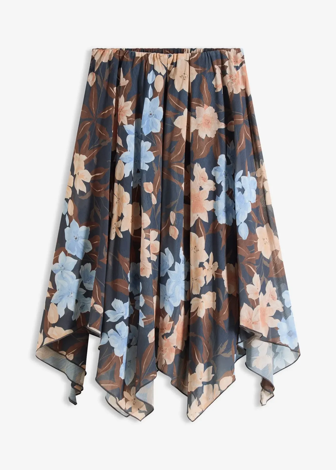Jupe midi asymétrique en mousseline à imprimé floral, taille élastiquée